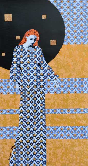RAISKIN ** UNTITLED ** HAND SIGNED GICLEE ON CANVAS. Artist: Marina Raiskin - Title: Untitled - Medium: Hand Embellished Fine Art Giclee on Canvas - Edition: 95 - Signature: Hand-signed by the artist - Image Size: Approximately 25 ¾ inches x 12 ¾ inches - Framed: Unframed on Unstretched Canvas - Details: This work comes with a Certificate of Authenticity - Biography: Marina's fashion and textile design knowledge has influenced her art designs. This combination turned into the basis of the art that Marina has pursued in the last few years: classical art, influenced by the renowned classical artist Gustav Klimt, characters from the world of fashion; and most importantly, an emphasis on textures, graphic shapes, color, and different materials. Influences from the Eastern culture are also visible, especially in the choice of colors and textures. - Warranty: Item GUARANTEED to be as described
