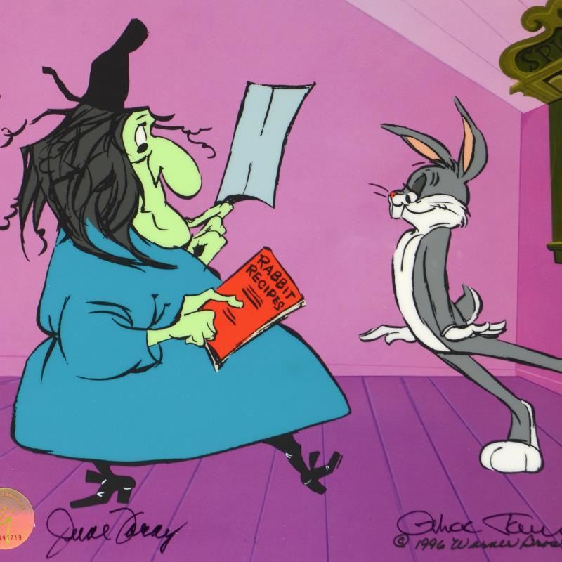 "Rabbit Recipes" is a limited edition animation cel with hand painted coloring on sericel outline. The piece is numbered, hand signed by Chuck Jones (1912-2002), and includes a Certificate of Authenticity! Measures Approx: 12.5" x 10.5"