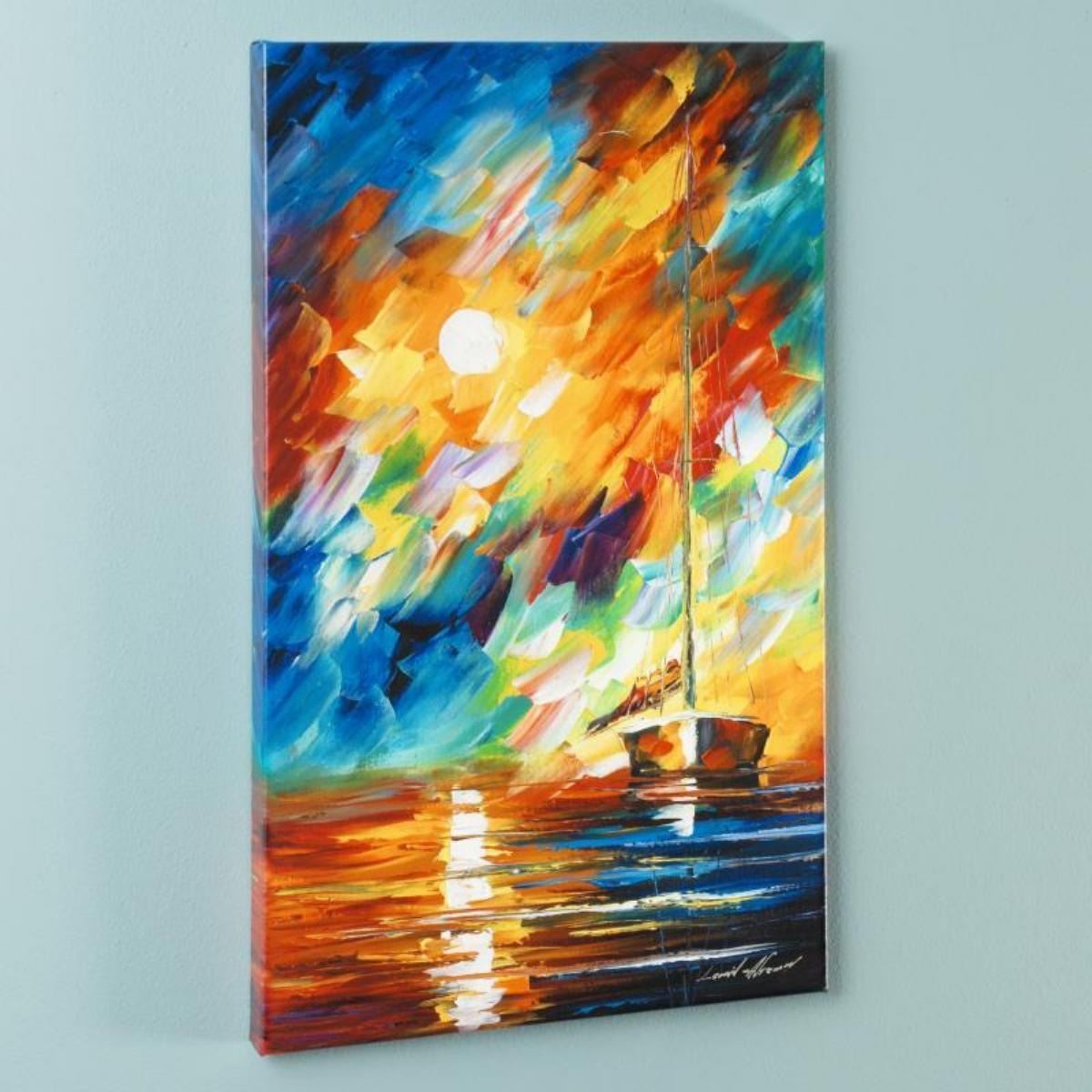 Leonid Afremov's (1955-2019) masterful use of color and texture make his paintings unique collectibles that are sure to brighten any wall. "Rainbow Sky" is a limited edition giclee on canvas. The piece is numbered and bears the artist's authorized signature. This piece comes gallery wrapped. Includes Letter of Authenticity. Measures approx. 16" x 27.5" (image). This item requires special handling and may have a longer than usual turnaround.