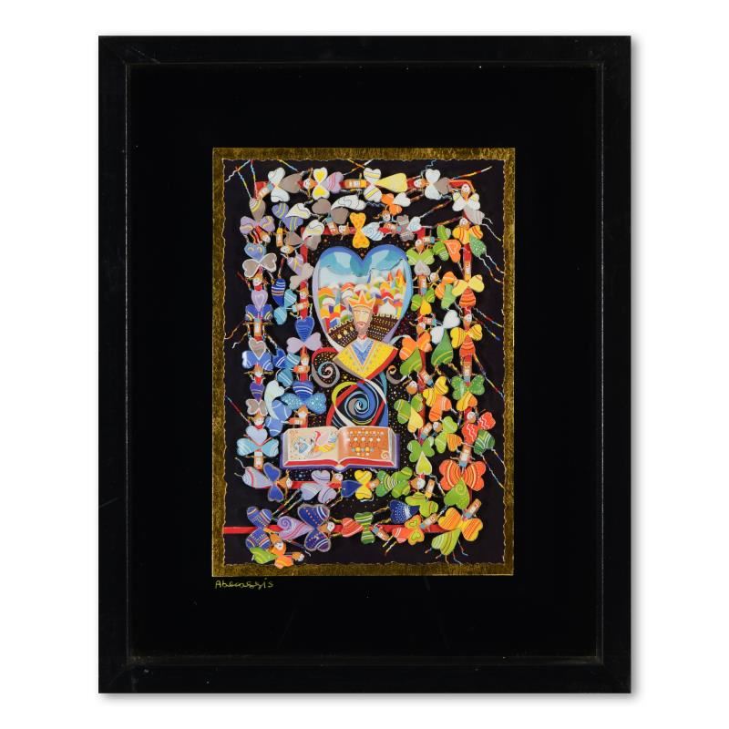 "Psalms of David" is an original 6-Layer decoupage, hand signed by the artist. This piece comes framed. Includes Letter of Authenticity. Measures approx. 17" x 21" (with frame), 10" x 14" (image). ** There are signs of wear on the corners and edges of the