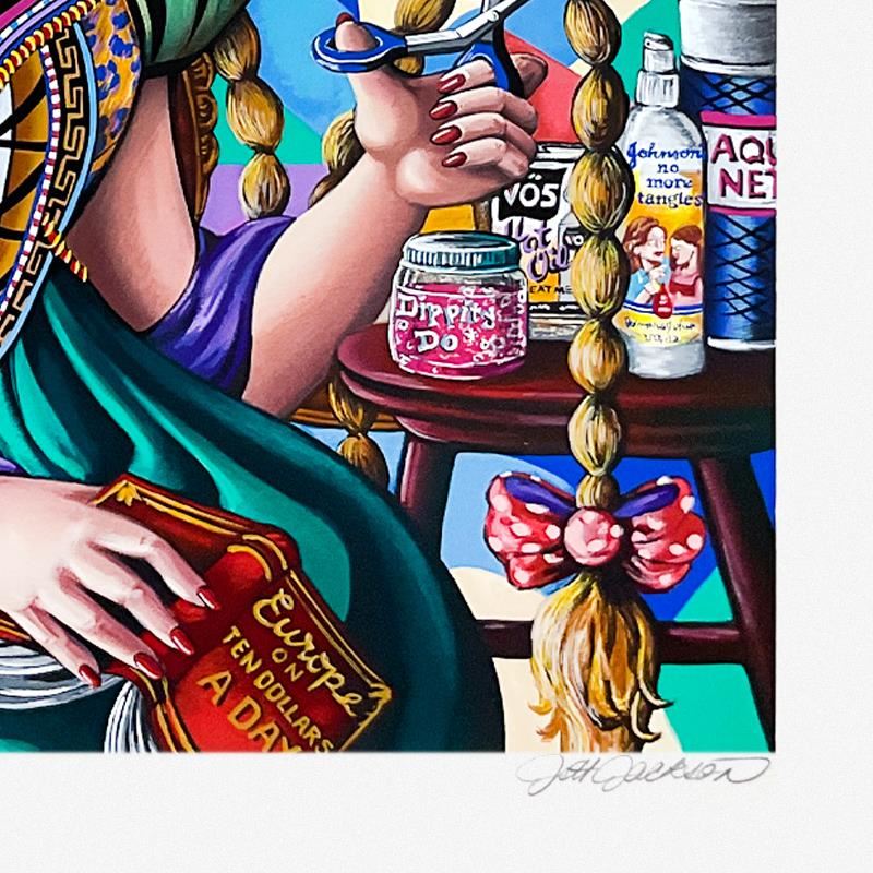 "Rapunzel" is a limited edition printer's proof on paper by Jett Jackson, numbered 1/1 and hand signed by the artist. Includes Letter of Authenticity. Measures approx. 32" x 28" (border), 26" x 23" (image). There are minor imperfections in the border area that may be concealed when framed.