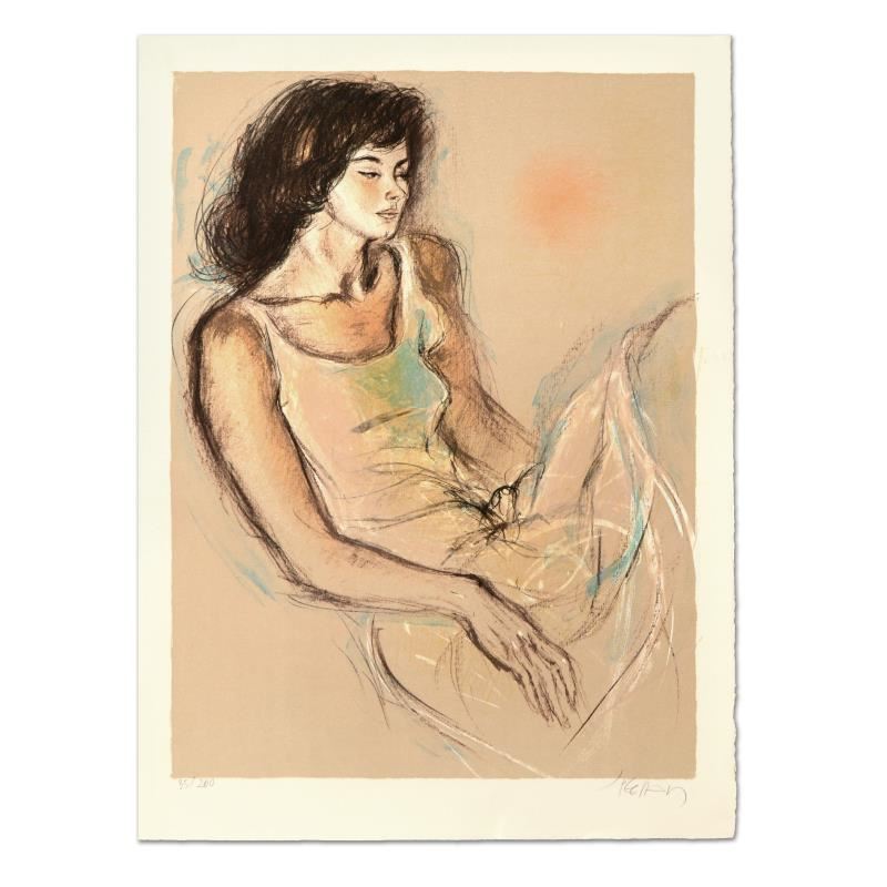 "Reflections" is a limited edition lithograph on paper by Pecard, numbered and hand signed by the artist. Measures approx. 22" x 30" (border). 19" x 27" (image).