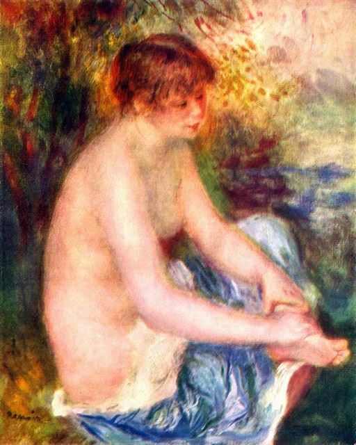 Artist: Pierre-Auguste Renoir 1841-1919 - Title: Nude in Blue - Medium: Fine Art Reproduction Giclee on Canvas - Image Size: Approximately 20 inches x 16 inches - Unframed on Unstretched Canvas - Biography: An innovative artist, Pierre-Auguste Renoir
