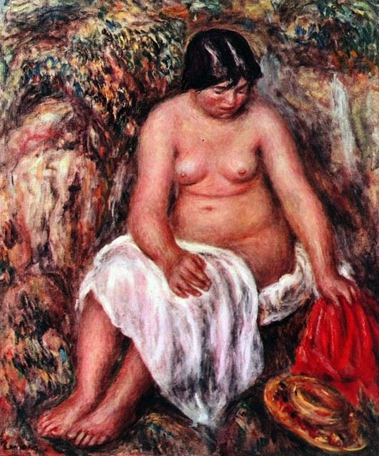 Artist: Pierre-Auguste Renoir 1841-1919 - Title: Nude With Straw - Medium: Fine Art Reproduction Giclee on Canvas - Image Size: Approximately 20 inches x 16.5 inches - Unframed on Unstretched Canvas - Biography: An innovative artist, Pierre-Auguste R