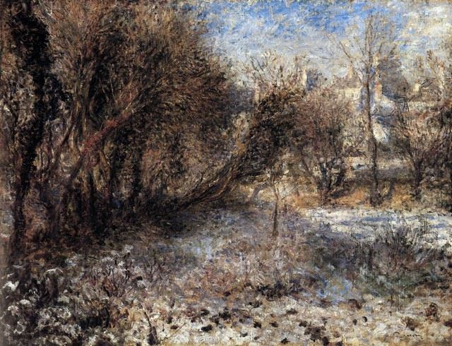 Artist: Pierre-Auguste Renoir 1841-1919 - Title: Snowy Landscape - Medium: Fine Art Reproduction Giclee on Canvas - Image Size: Approximately 15.25 inches x 20 inches - Unframed on Unstretched Canvas - Biography: An innovative artist, Pierre-Auguste Renoir was born on February 25, 1841, in Limoges, France. He started out as an apprentice to a porcelain painter and studied drawing in his free time. After years as a struggling painter, Renoir helped launch an artistic movement called Impressionism in 1870s. He eventually became one of the most highly regarded artists of his time. He died in Cagnes-sur-Mer, France, in 1919. -