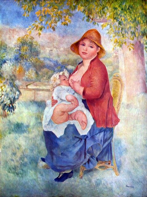 Artist: Pierre-Auguste Renoir 1841-1919 - Title: The Child At The Chest Maternity - Medium: Fine Art Reproduction Giclee on Canvas - Image Size: Approximately 20 inches x 14.75 inches - Unframed on Unstretched Canvas - Biography: An innovative artis