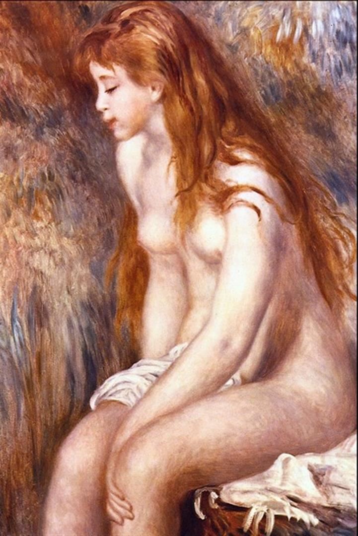 Artist: Pierre-Auguste Renoir 1841-1919 - Title: Young Girl Bathing - Medium: Fine Art Reproduction Giclee on Canvas - Image Size: Approximately 20 inches x 13.25 inches - Unframed on Unstretched Canvas - Biography: An innovative artist, Pierre-Augus