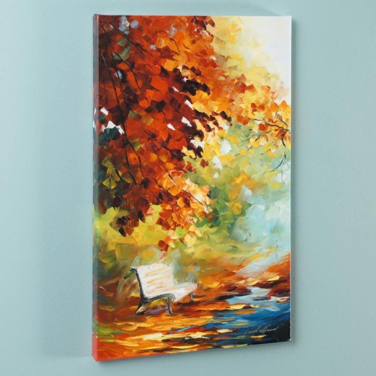 Leonid Afremov's (1955-2019) masterful use of color and texture make his paintings unique collectibles that are sure to brighten any wall. "Respite Spot" is a limited edition giclee on canvas. The piece is numbered and bears the artist's authorized signature. This piece comes gallery wrapped. Includes Letter of Authenticity. Measures approx. 16" x 27.5" (image). This item requires special handling and may have a longer than usual turnaround.