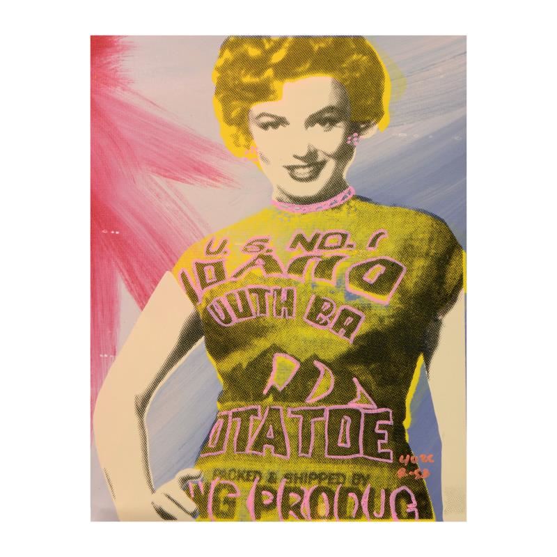"See My Potato Sack (Marilyn)" is a one-of-a-kind hand-pulled silkscreen and mixed media painting on canvas by Ringo (Daniel Funes) - protege of Andy Warhol's apprentice, Steve Kaufman. This piece is hand signed by the artist and Includes Certificate of A