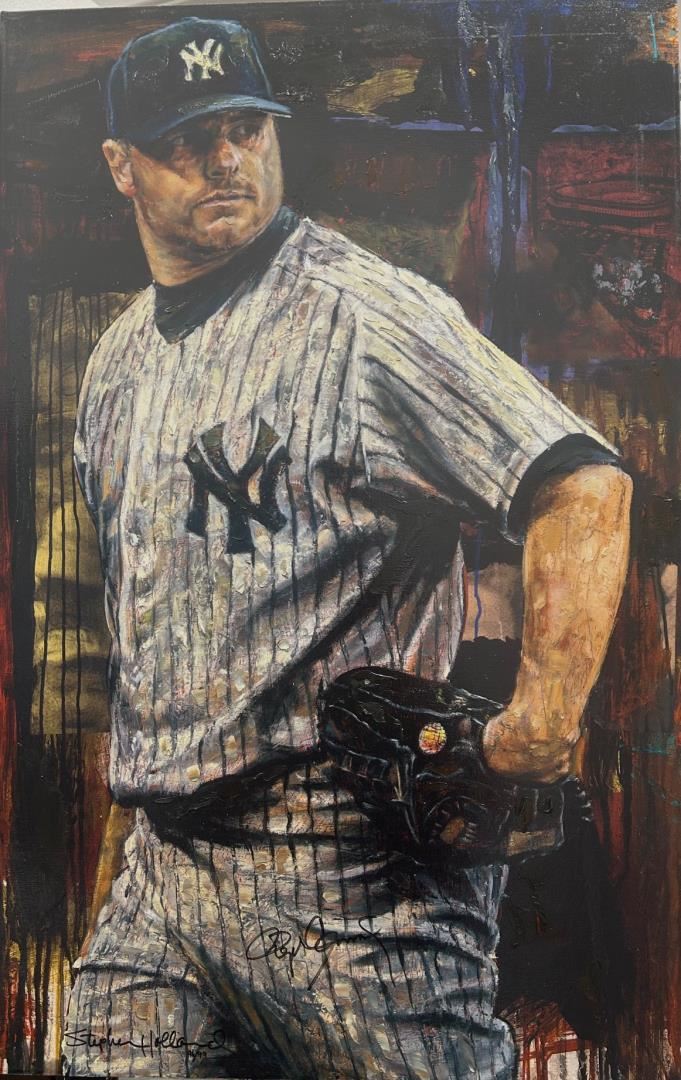 Stephen Holland's portrait of Yankee Clemens, signed by Clemens & artist, hand embellished 40" x 26" Giclee 96/99, on stretched canvas, certificate
