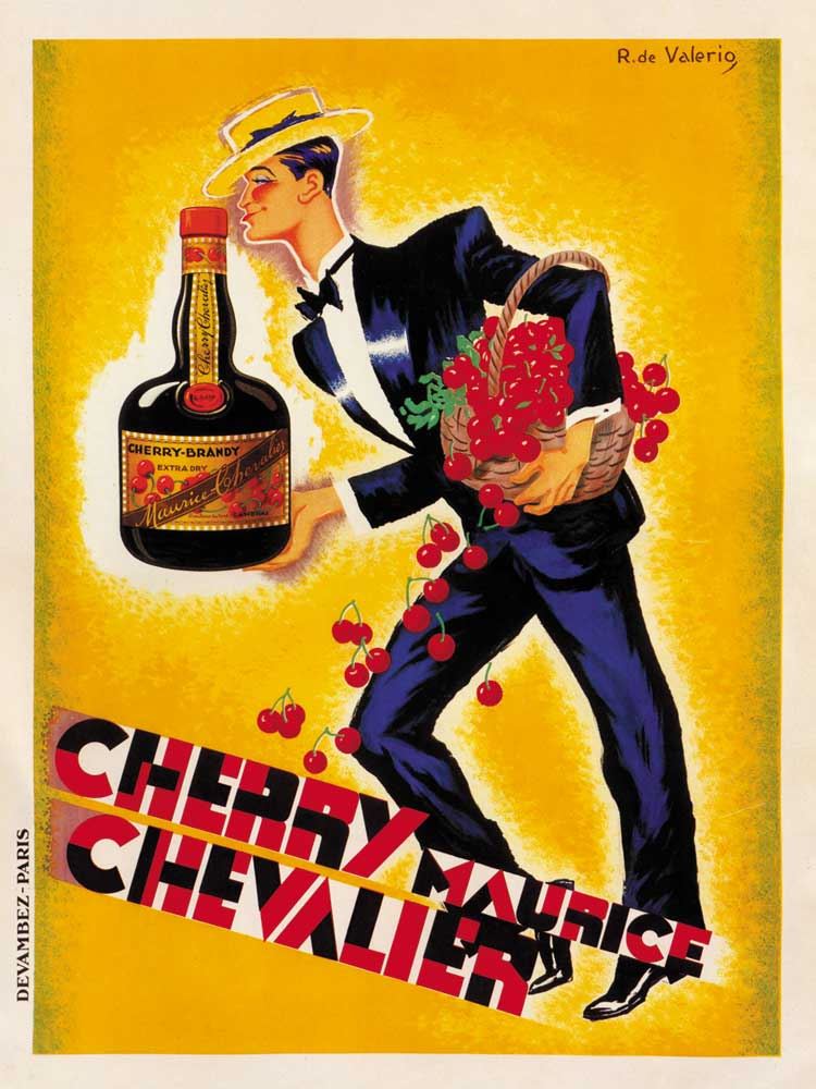 Artist: Roger DeValerio Title: Cherry Chevalier Medium: Fine Art Giclee on Canvas Image Size: Approximately 26.5 inches x 20 inches Unframed on Unstretched Canvas Details: This is a beautiful Reproduction Giclee on Archival Canvas. Biography: De Valerio, born in Lille, worked in Paris--principally at the Devambez and Perceval agencies, whose clients included Air France, Citroen and Chrysler. He also designed more than 2,000 sheet-music covers for music publisher-producer Salabert.