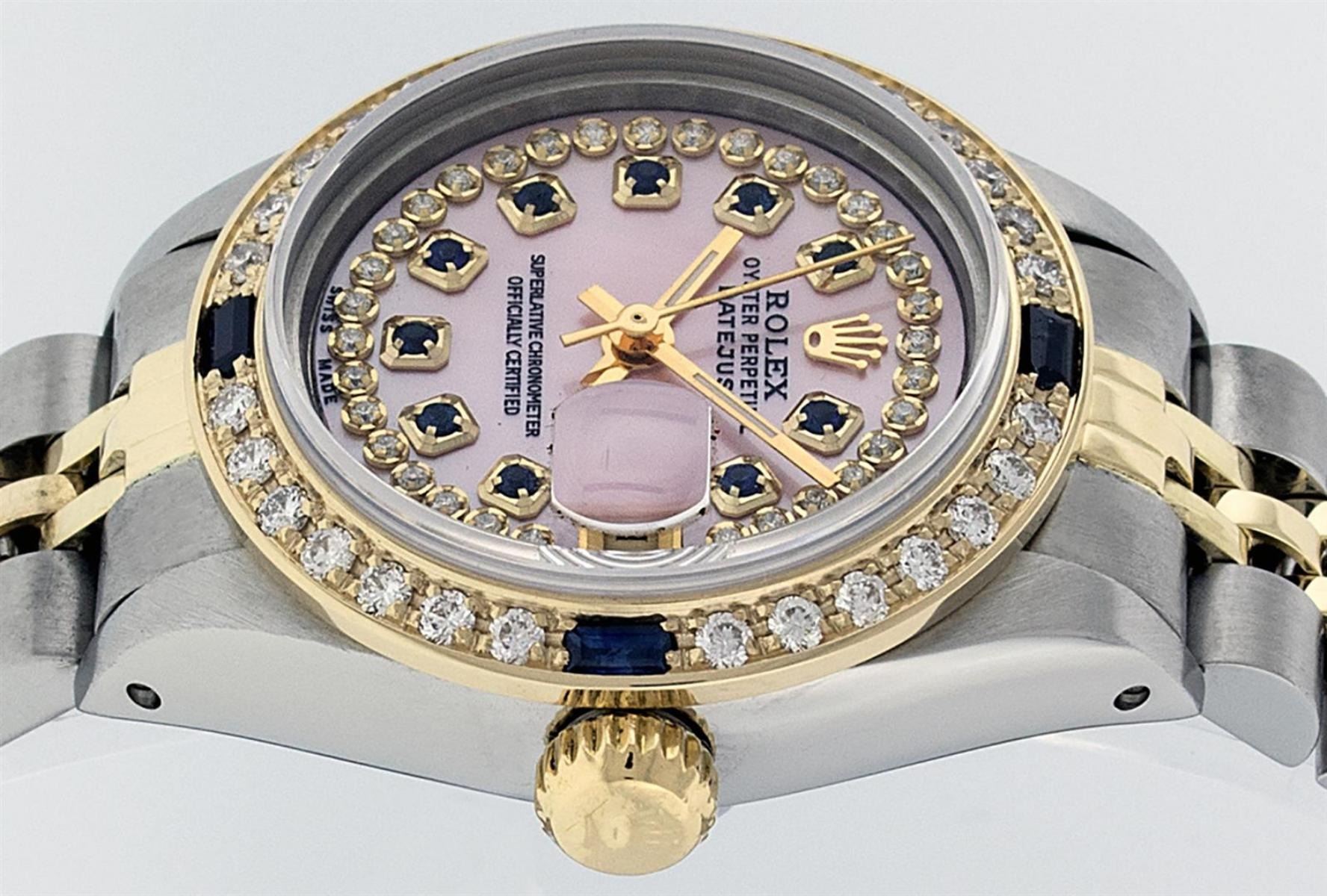 Rolex Ladies 2 Tone 14K Pink MOP Diamond & Sapphire String Datejust Wristwatch
