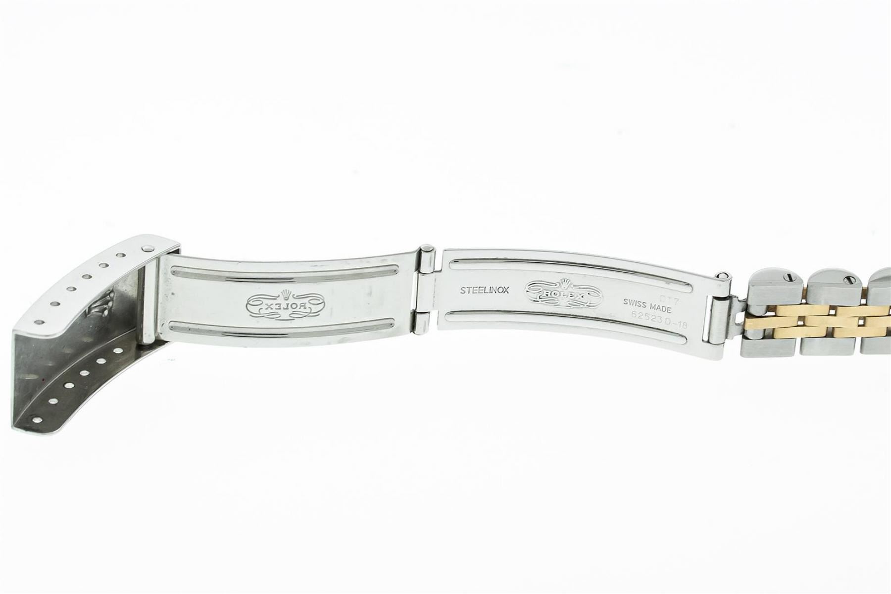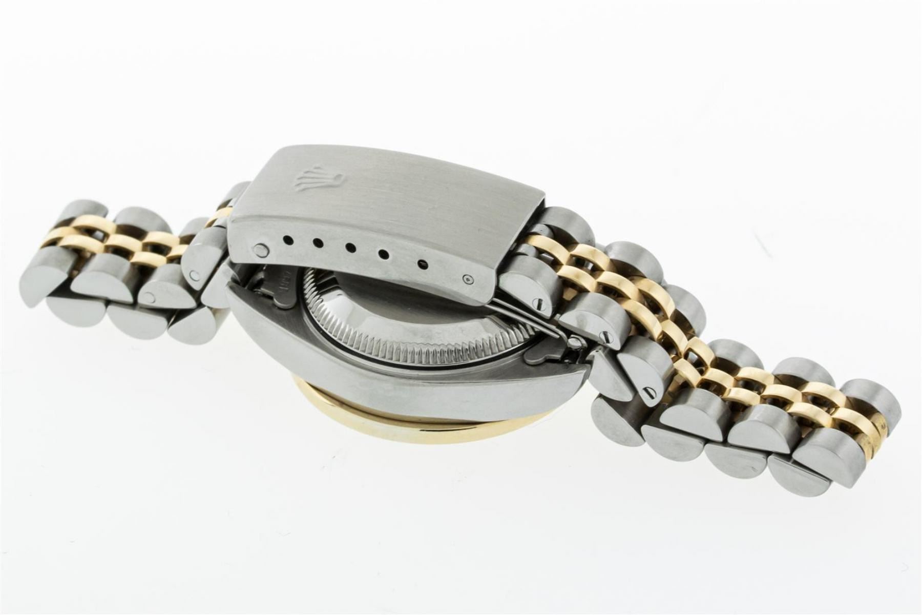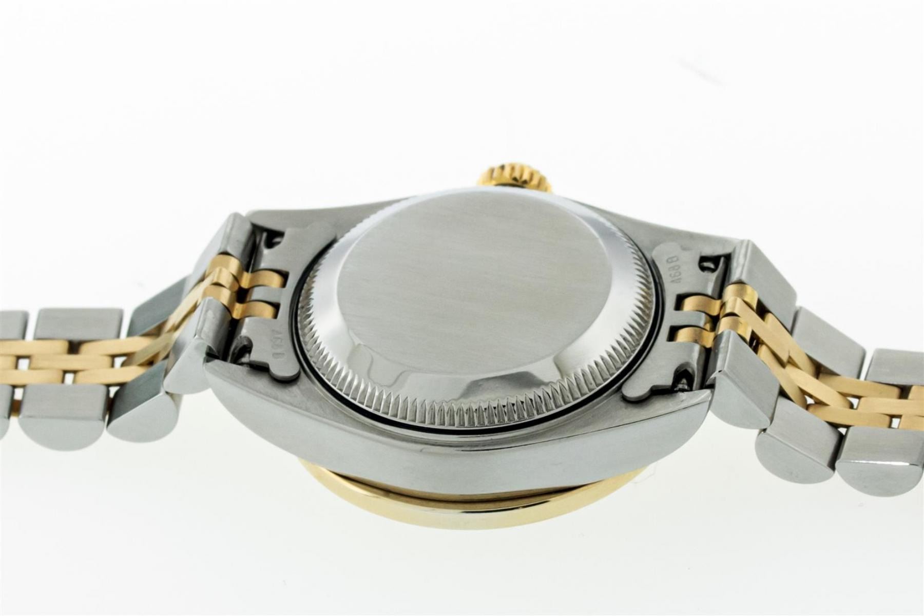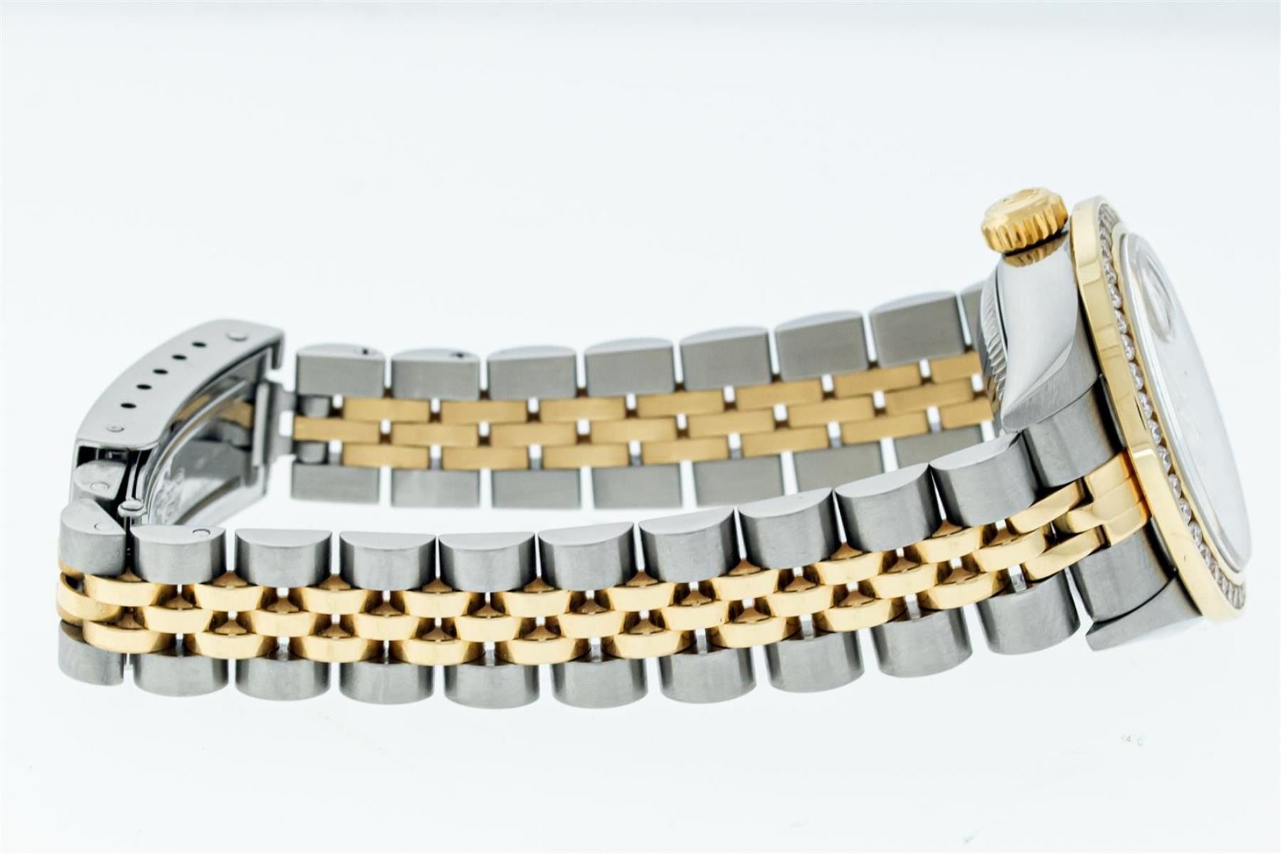One Ladies Quickset 18K Two Tone Rolex Datejust Polished, Serviced & Electronically Tested, 18K Yellow Gold & Stainless Steel Case: 26mm, 18K Yellow Gold Crown. Custom Bezel: New 18K Yellow Gold Beadset Diamond Bezel, Diamond Count: 44 Diamonds On Bezel,