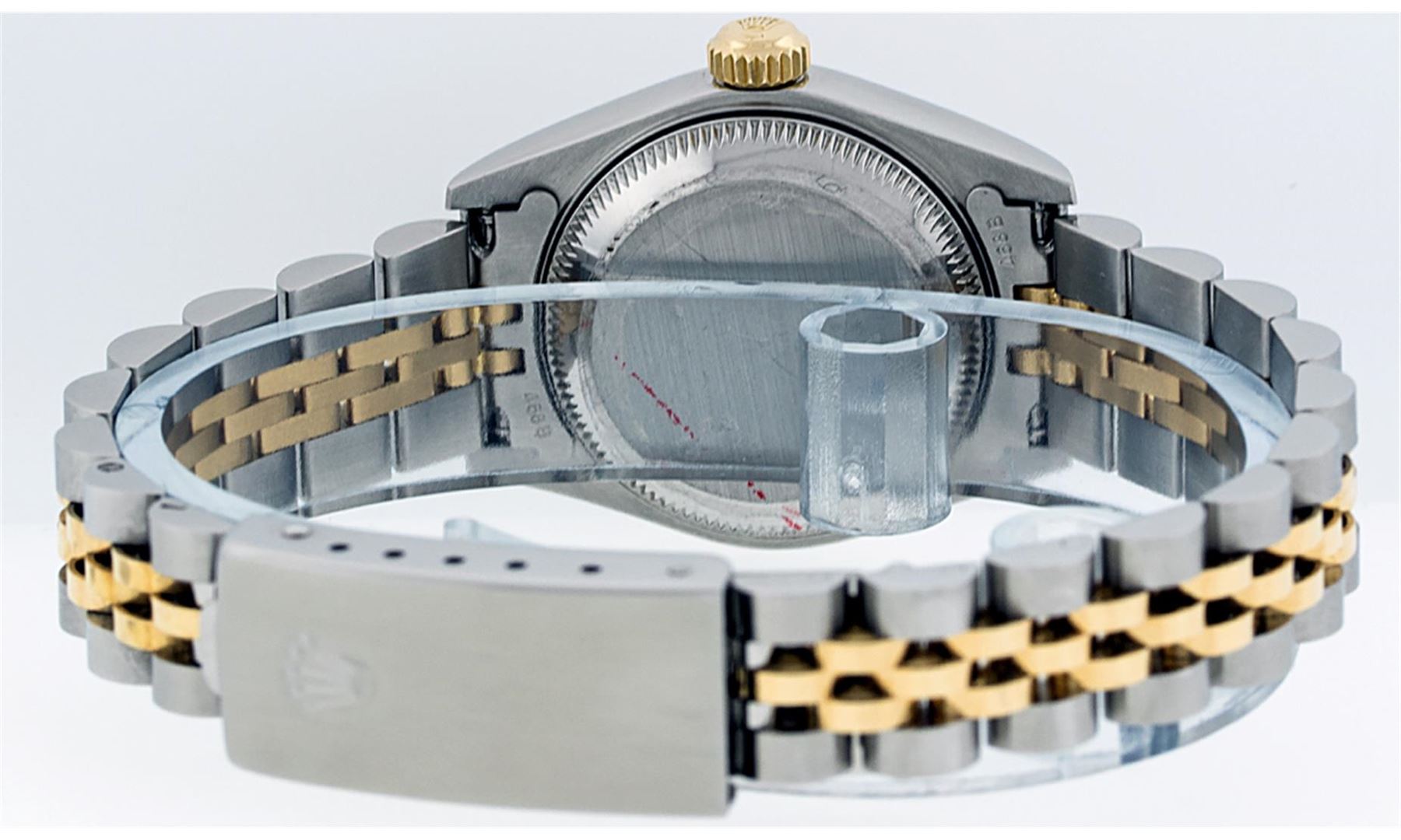 Rolex Ladies 18K Two Tone Yellow Gold & Stainless Steel Rolex Datejust Polished, Serviced & Electronically Tested, 18K Yellow Gold & Stainless Steel, Case Size: 26mm, 18K Yellow Gold Crown, Bezel: New 18K Yellow Gold Fluted Bezel. Custom Crystal: New Acrylic Cyclops Lens. Custom Hands: New Luminescent Hands. Movement: Automatic Winding Movement. Custom Dial: Mother Of Pearl Single Cut Diamond Dial, Diamond Count: 10 Diamonds In Dial, Color: G To H, Clarity VS2. Date Window: 3 O'Clock Position Date Display, Model: Datejust. Condition: G-6 Extra Fine. Bracelet: Two Tone 18K Yellow Gold & Stainless Steel Jubilee. Bright Polish. 6.0 Inch Length, Adjustable. Standard Clasp, With Rolex Logo. This Watch Has Been Serviced Time Tested And Is In Excellent Condition It Is Free Of All Scratches And Dents.