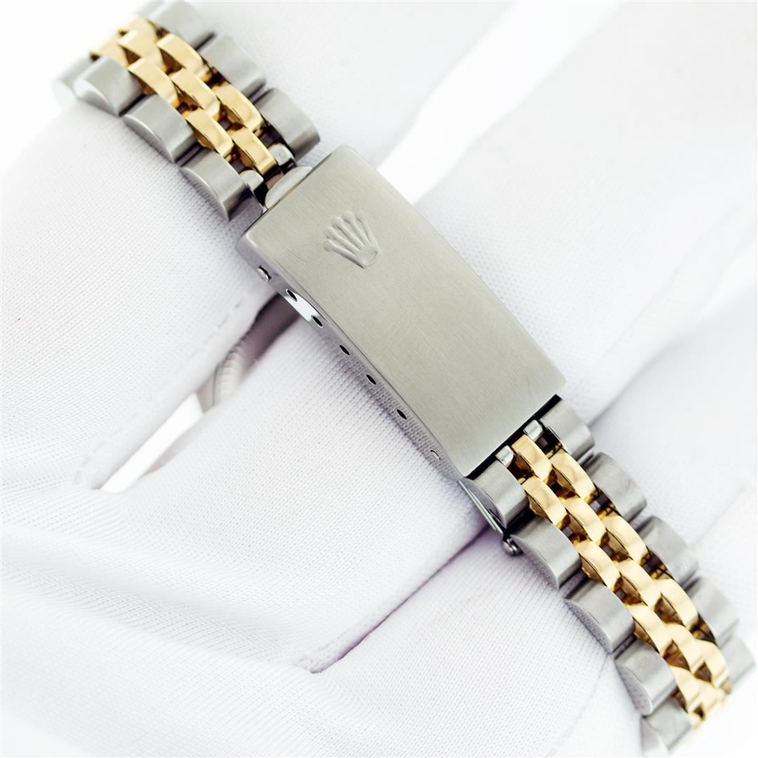 One Ladies Quickset Pre Owned Two Tone 18K Yellow Gold & Stainless Steel Rolex Datejust Polished, Serviced & Electronically Tested, Rolex Yellow Gold & Stainless Steel Case: 26mm, Rolex Yellow Gold Crown, Rolex Bezel: Rolex Yellow Gold Fluted Bezel. Crystal: Sapphire Crystal With Date Window. Hands: Solid Hands. Rolex Movement: Quickset Automatic Winding Movement. Rolex Factory Dial: Champagne With Diamond Hour Markers And Dash Track, Diamond Count: 10 Diamonds In Dial. Date Window: 3 O'Clock Position Date Display, Model: Quickset Datejust. Condition: G-6 Extra Fine. Rolex Bracelet: Two Tone 18K Yellow Gold & Stainless Steel Jubilee Band. Bright Polish. 6.0 Inch Length, Adjustable. Standard Clasp, With Rolex Logo. This Pre Owned Watch Has Been Serviced Time Tested And Is In Excellent Condition It Is Free Of All Scratches And Dents. This Watch Comes With A Rolex Box, Booklets, And Wallet.