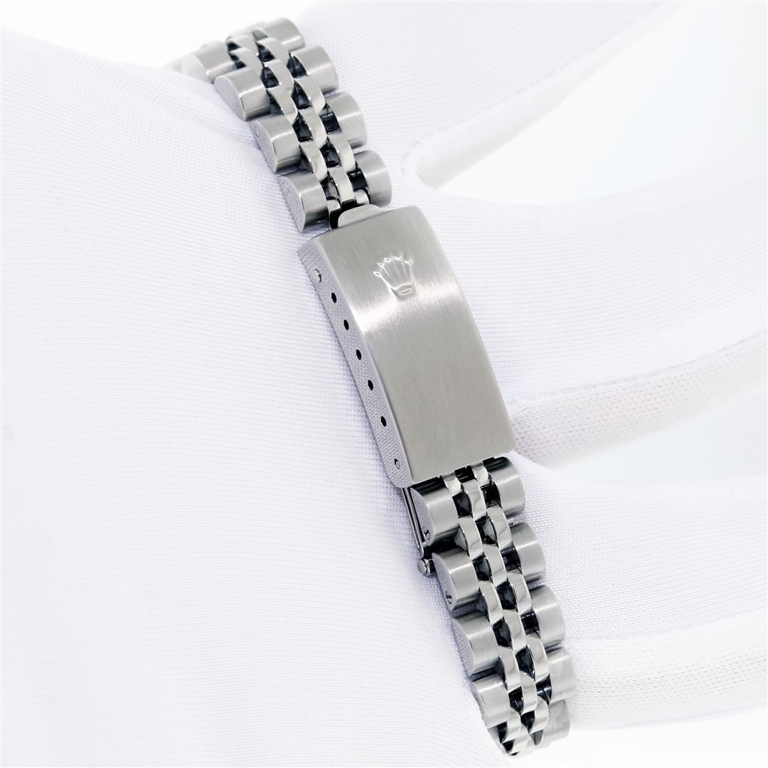 One Quickset Sapphire Pre Owned Ladies Stainless Steel Rolex Datejust Polished Bright with Satin Finish, Serviced & Electronically Tested, Rolex Stainless Steel Case: 26mm, Rolex Stainless Steel Crown, Rolex Bezel: 18K White Gold Fluted Bezel, Crystal: Sapphire With Date Window. Custom Hands: New Hands. Rolex Movement: Automatic Winding Movement 2235. Rolex Dial: White Roman With Square Track, Date Window: 3 O'Clock Position Date Display, Model: Quickset Datejust. Condition: G-6 Extra Fine. Rolex Bracelet: Stainless Steel Jubilee Band. Bright Polish & Satin Finish. 6.0 Inch Length, Adjustable. Standard Clasp, With Rolex Logo. This Watch Has Been Serviced Time Tested And Is In Excellent Condition It Is Free Of All Scratches And Dents. This Watch Comes With A Rolex Box, Rolex Booklets, And Rolex Wallet.