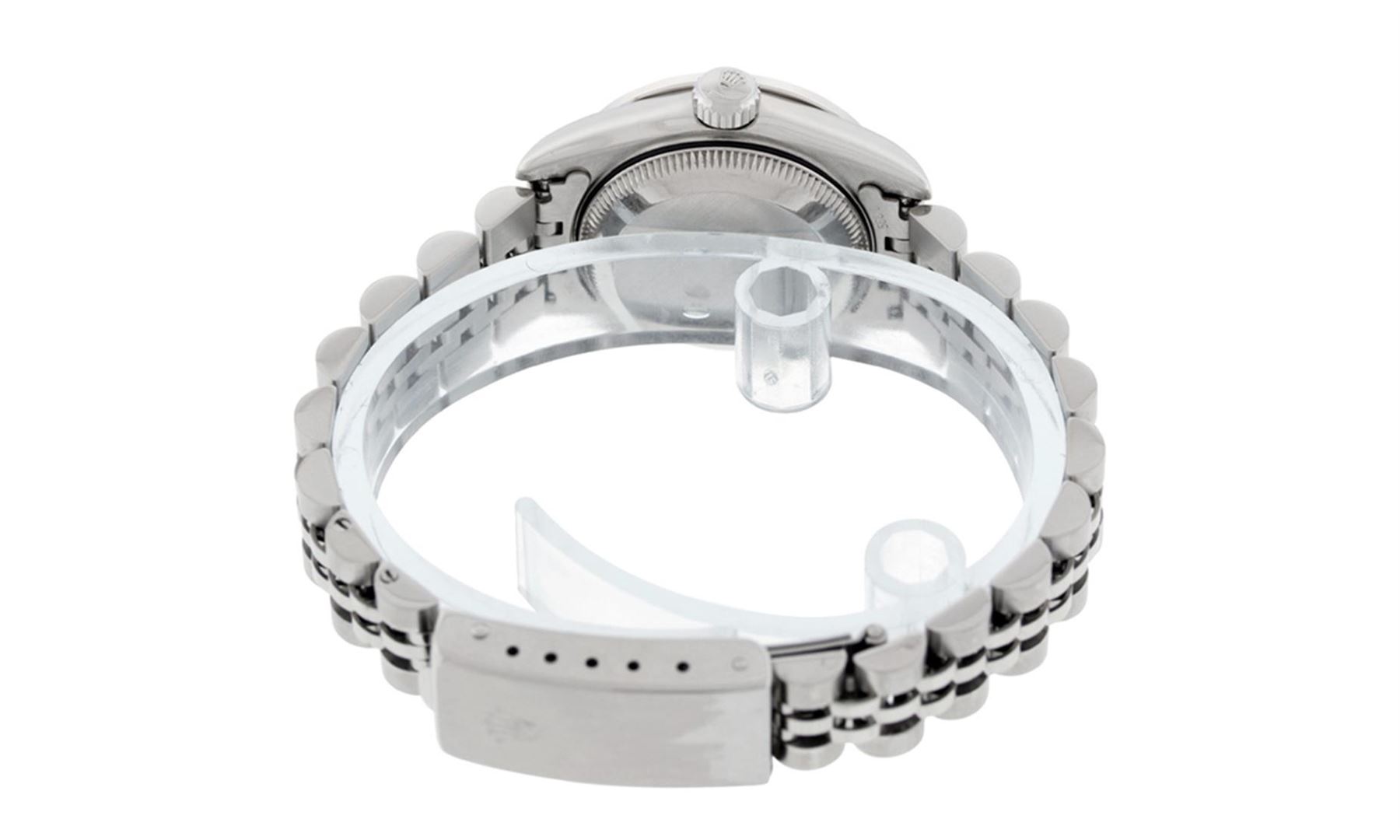 One Quickset Ladies Stainless Steel Rolex Oyster Perpetual Datejust Polished Bright with Satin Finish, Serviced & Electronically Tested, Stainless Steel Case: 26mm, Stainless Steel Crown, Custom Bezel: New 18K White Gold Diamond + Emerald Beadset Diamond Bezel, Stone Count: 28 Diamonds + 4 Emeralds, Total Weight .70 Carat, Clarity: SI-VS, Color: G to H. Custom Crystal: New Scratch Resistant Synthetic Sapphire Cyclops Lens. Custom Hands: New Luminescent Hands. Movement: Automatic Winding Movement. Custom Dial: Refinished Salmon Diamond Dial, 10 Diamonds in Dial G To H In Color, Clarity: VS. Date Window: 3 O'Clock Position Date Display, Model: Quickset 2230 Datejust. Condition: G-6 Extra Fine. Bracelet: Stainless Steel Jubilee Band. Bright Polish & Satin Finish. 6.0 Inch Length, Adjustable. Standard Clasp, With Rolex Logo. This Watch Has Been Serviced Time Tested And Is In Excellent Condition It Is Free Of All Scratches And Dents.