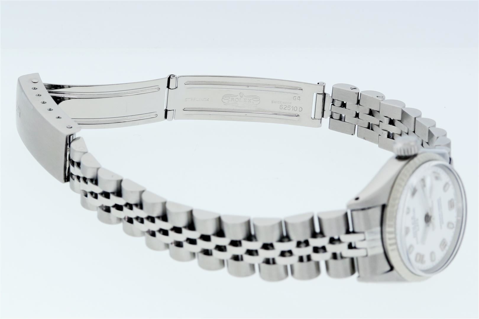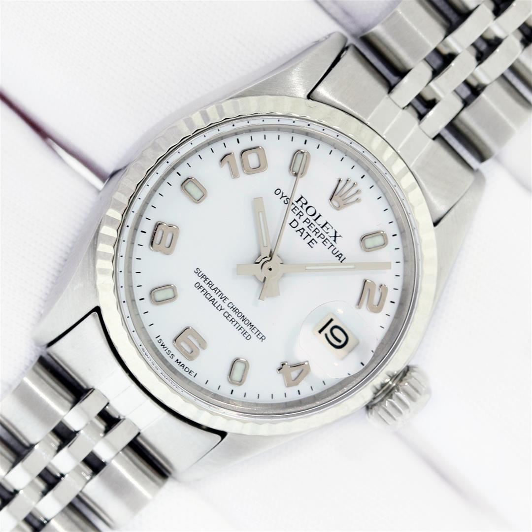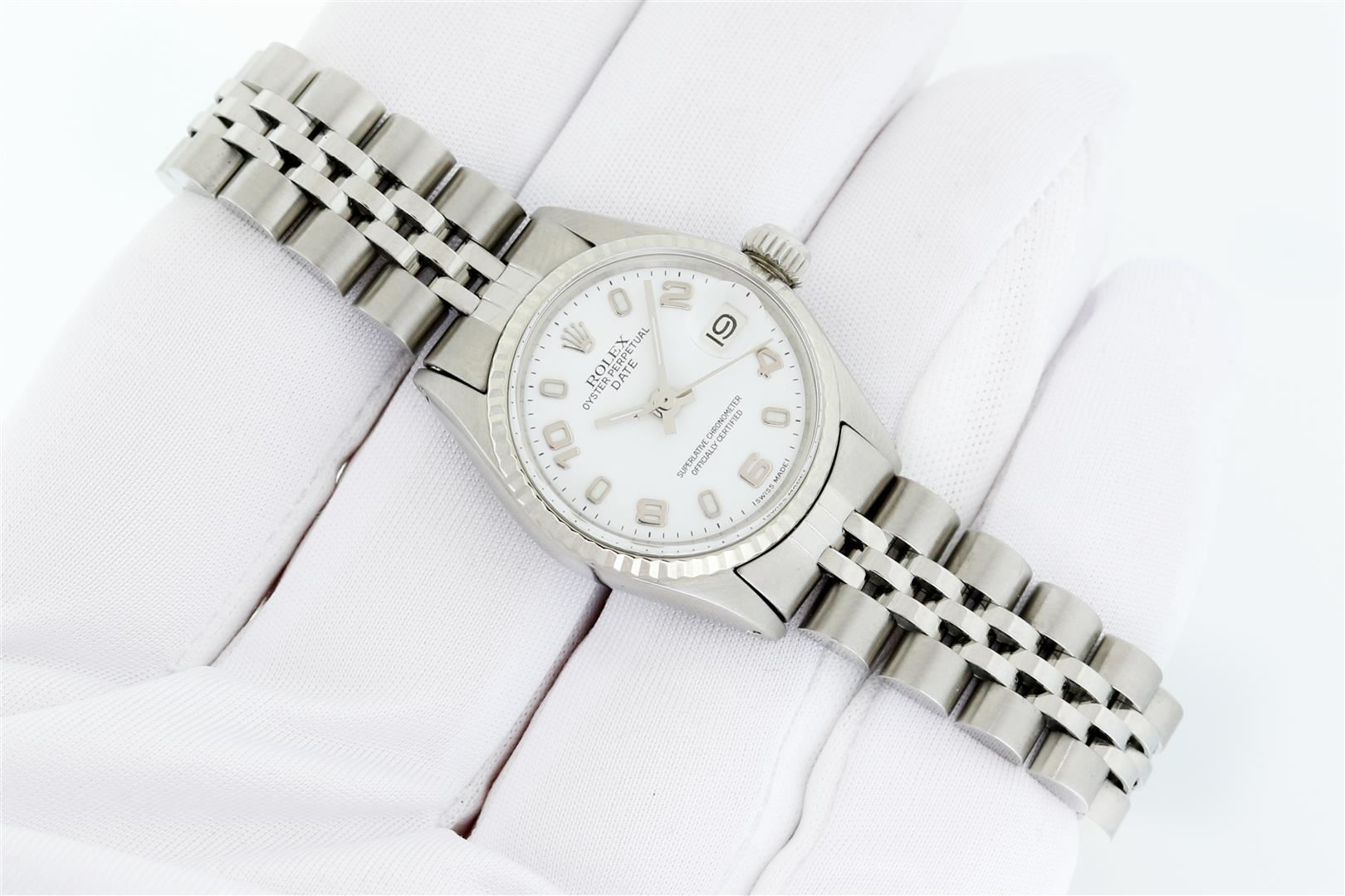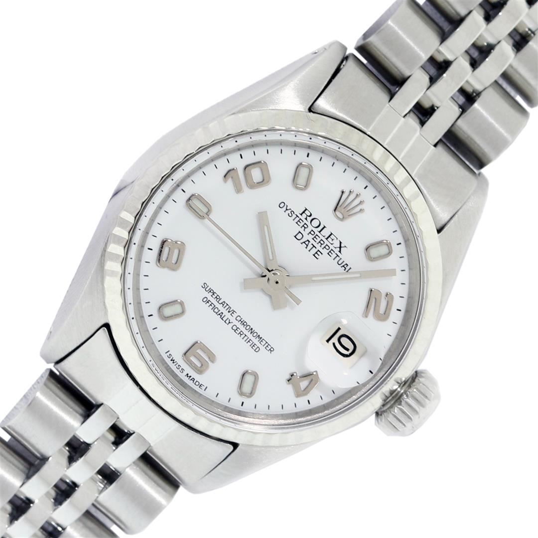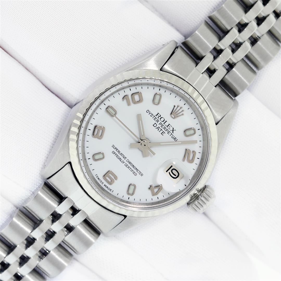 Rolex Ladies Stainless White Arabic Date Wristwatch