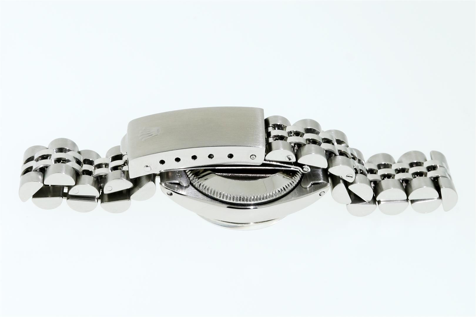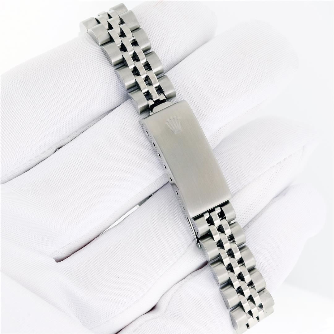 One Ladies Pre Owned Stainless Steel Rolex Date Polished Bright with Satin Finish, Serviced & Electronically Tested, Rolex Stainless Steel Case: 26mm, Rolex Stainless Steel Crown, Rolex Bezel: Rolex White Gold Fluted Bezel, Custom Crystal: New Acrylic Plastic Crystal. Custom Hands: New Luminescent Hands. Rolex Movement: Automatic Winding Movement 1161. Rolex Dial: White Arabic Dial. Date Window: 3 O'Clock Position Date Display, Model: Date. Condition: G-6 Extra Fine. Rolex Bracelet: Stainless Steel Jubilee Band. Bright Polish & Satin Finish. 6.00 Inches Length, Adjustable. Standard Clasp, With Rolex Logo. This Watch Has Been Serviced Time Tested And Is In Excellent Condition It Is Free Of All Scratches And Dents.
