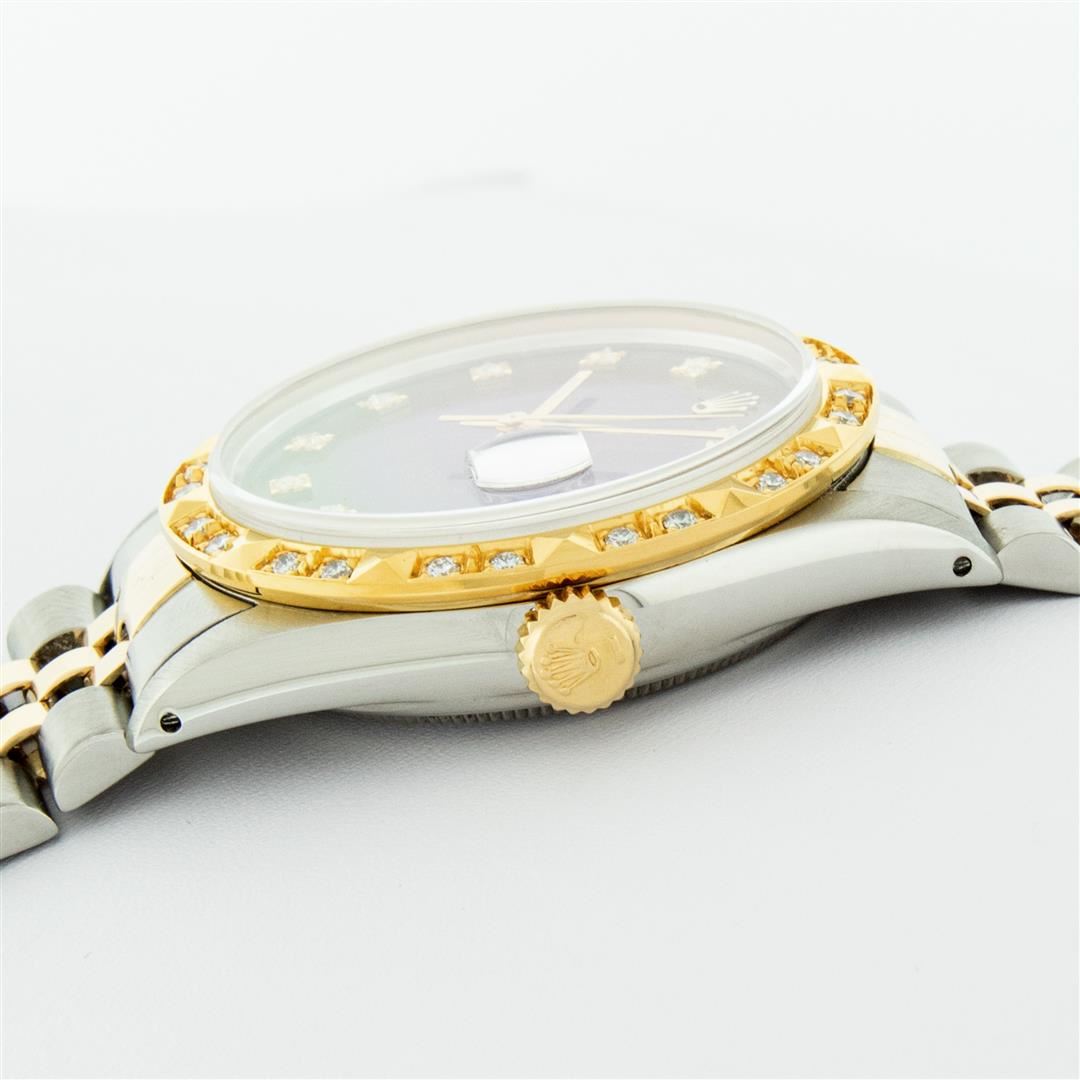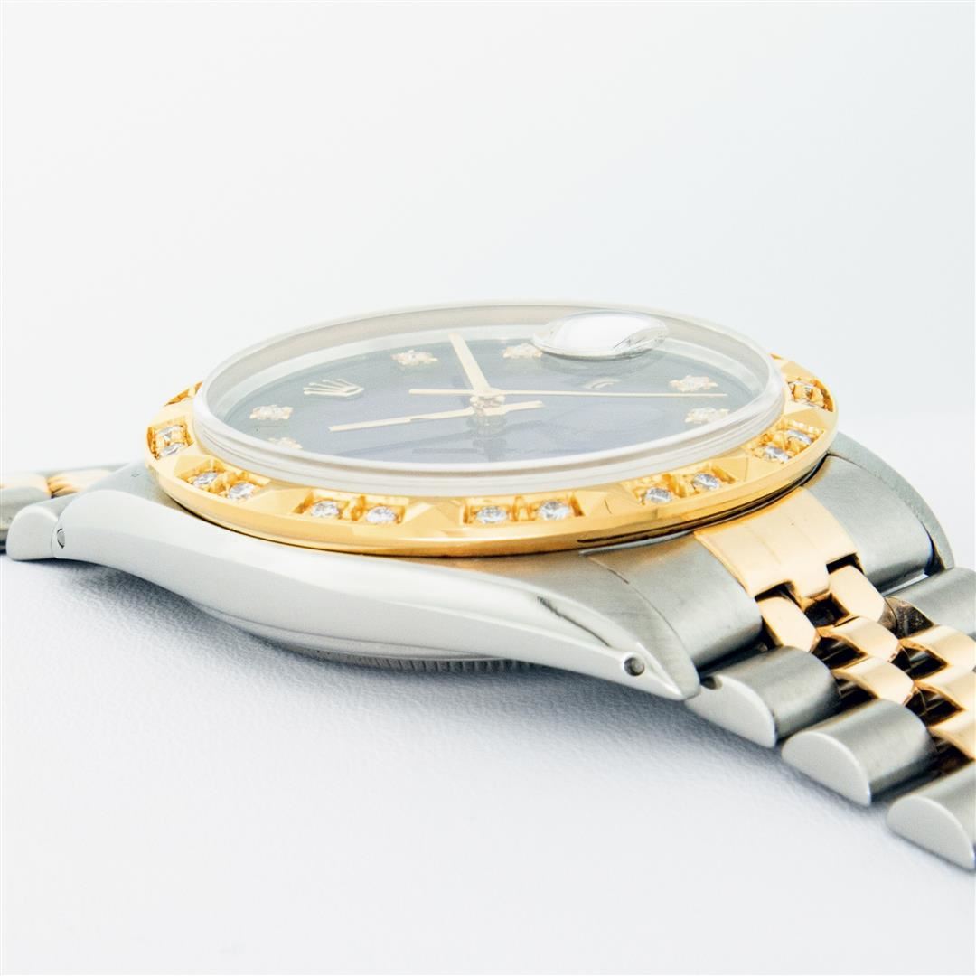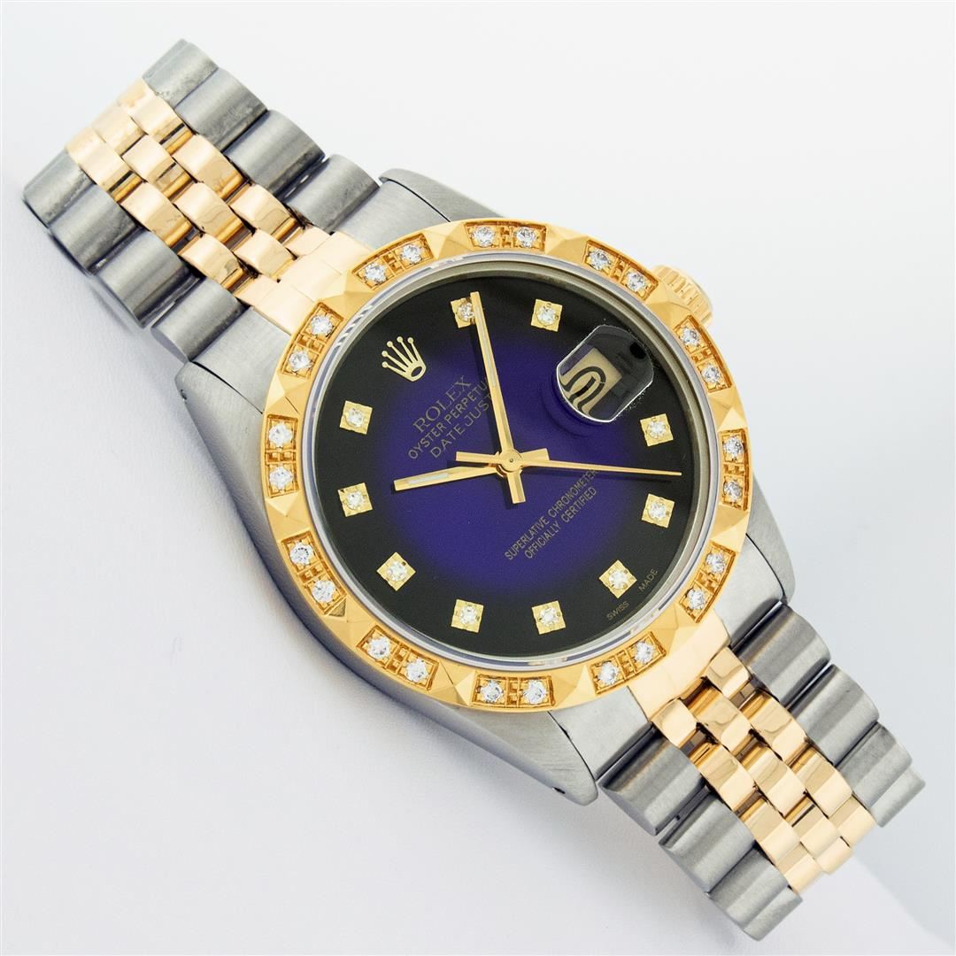 Rolex Mens 2 Tone 14K Blue Vignette String Pyramid Diamond Datejust Wristwatch