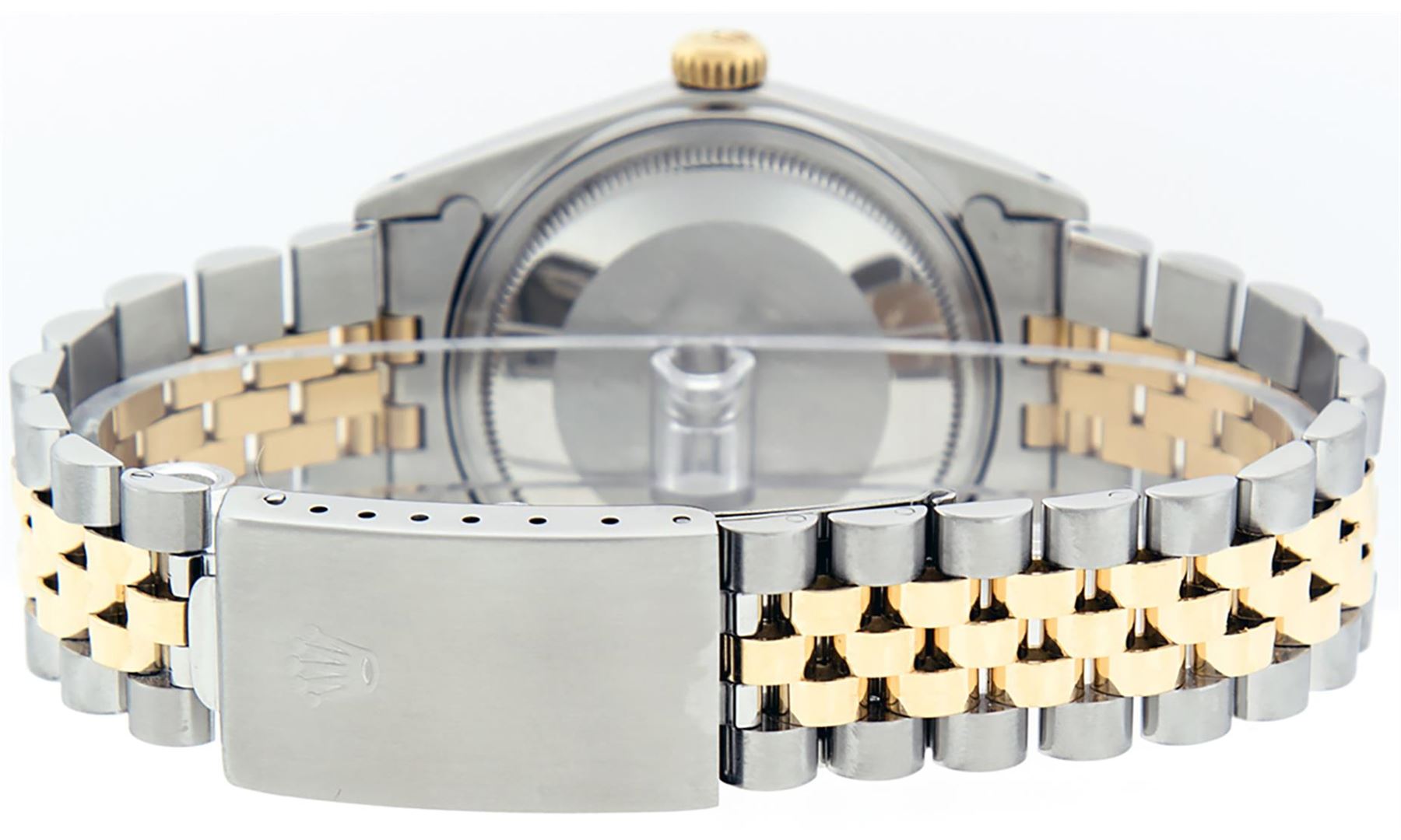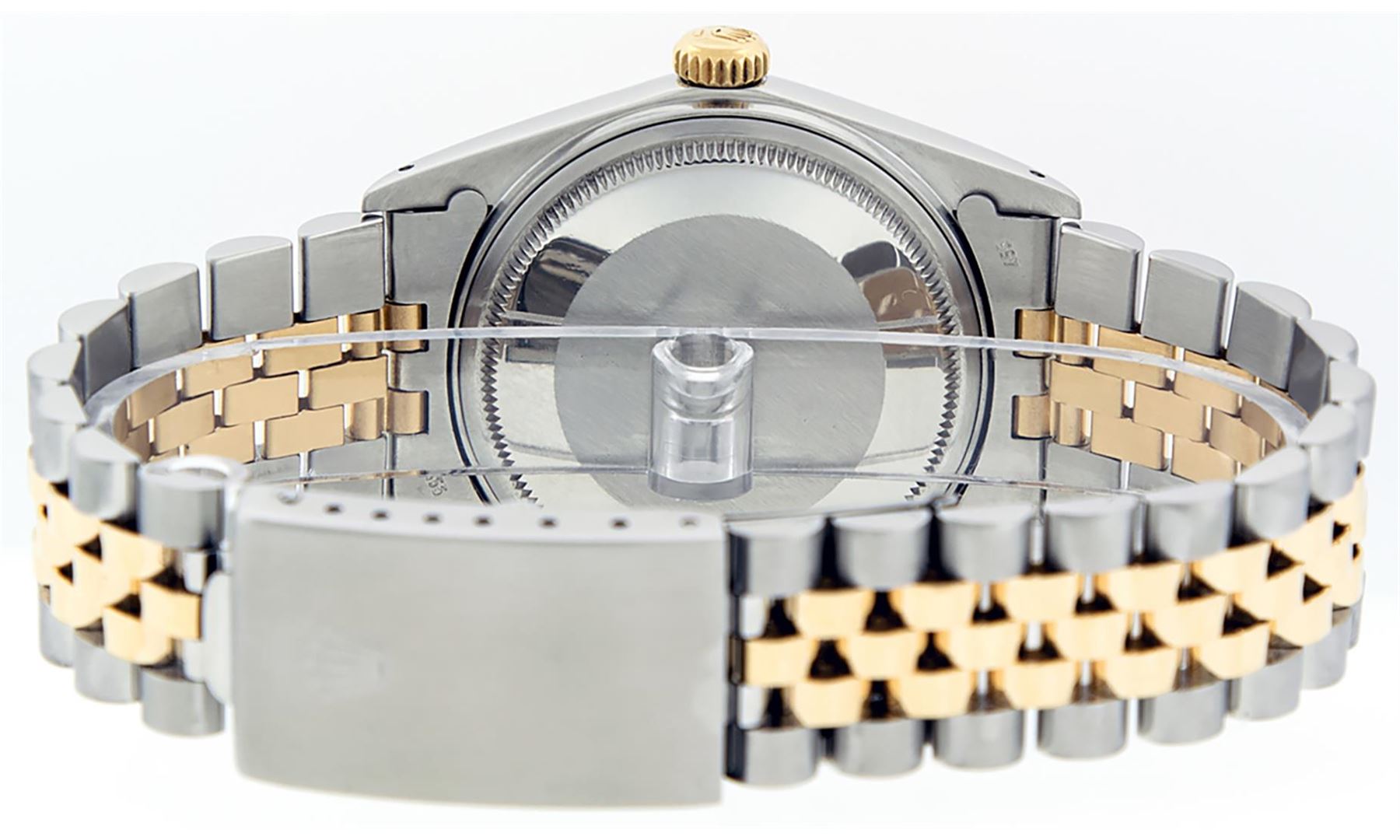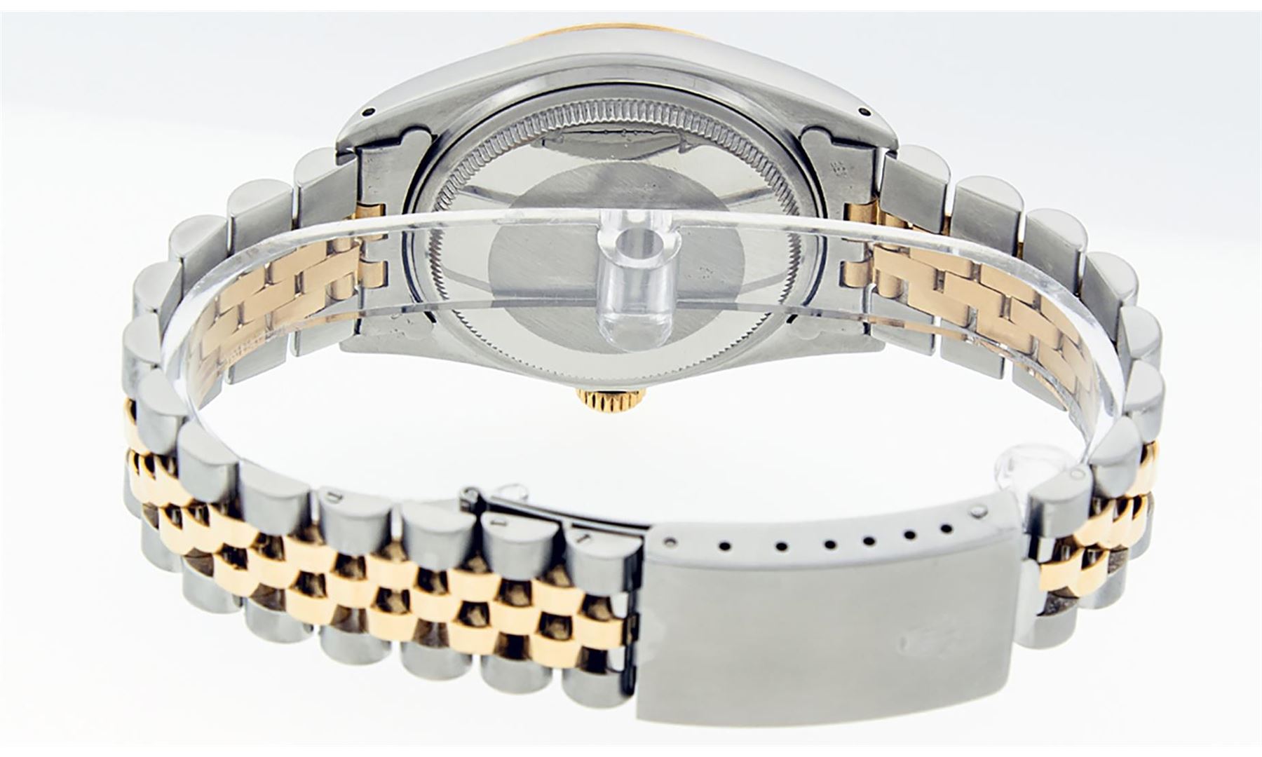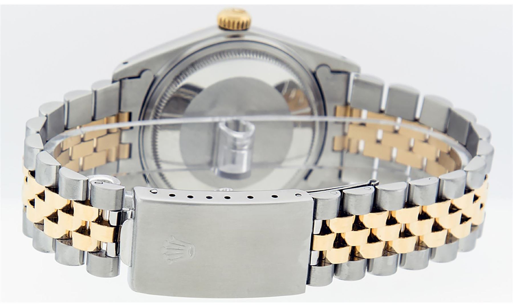 One Mens 14K Yellow Gold Two Tone Rolex Datejust Polished, Serviced & Electronically Tested, 14K Yellow Gold & Stainless Steel Case: 36mm,14K Yellow Gold Crown, Bezel: 14K Yellow Gold Fluted Bezel. Custom Crystal: New Acrylic Cyclops Lens. Custom Hands: New Luminecent Hands. Movement: Automatic Winding Movement Caliber 3035. Dial: Champagne Tapestry Dial With Index Hour Markers and Small Track With Lumi Dots. Date Window: 3 O'Clock Position Date Display, Quickset, Model: Datejust, Condition: G-6 Extra Fine. Bracelet: Two Tone 14K Yellow Gold & Stainless Steel Jubilee Band. Bright Polish. 7.0 Inch Length, Adjustable. Standard Clasp, With Rolex Logo. This Watch Has Been Serviced Time Tested And Is In Excellent Condition It Is Free Of All Scratches And Dents. This Watch Comes With A Rolex Box.