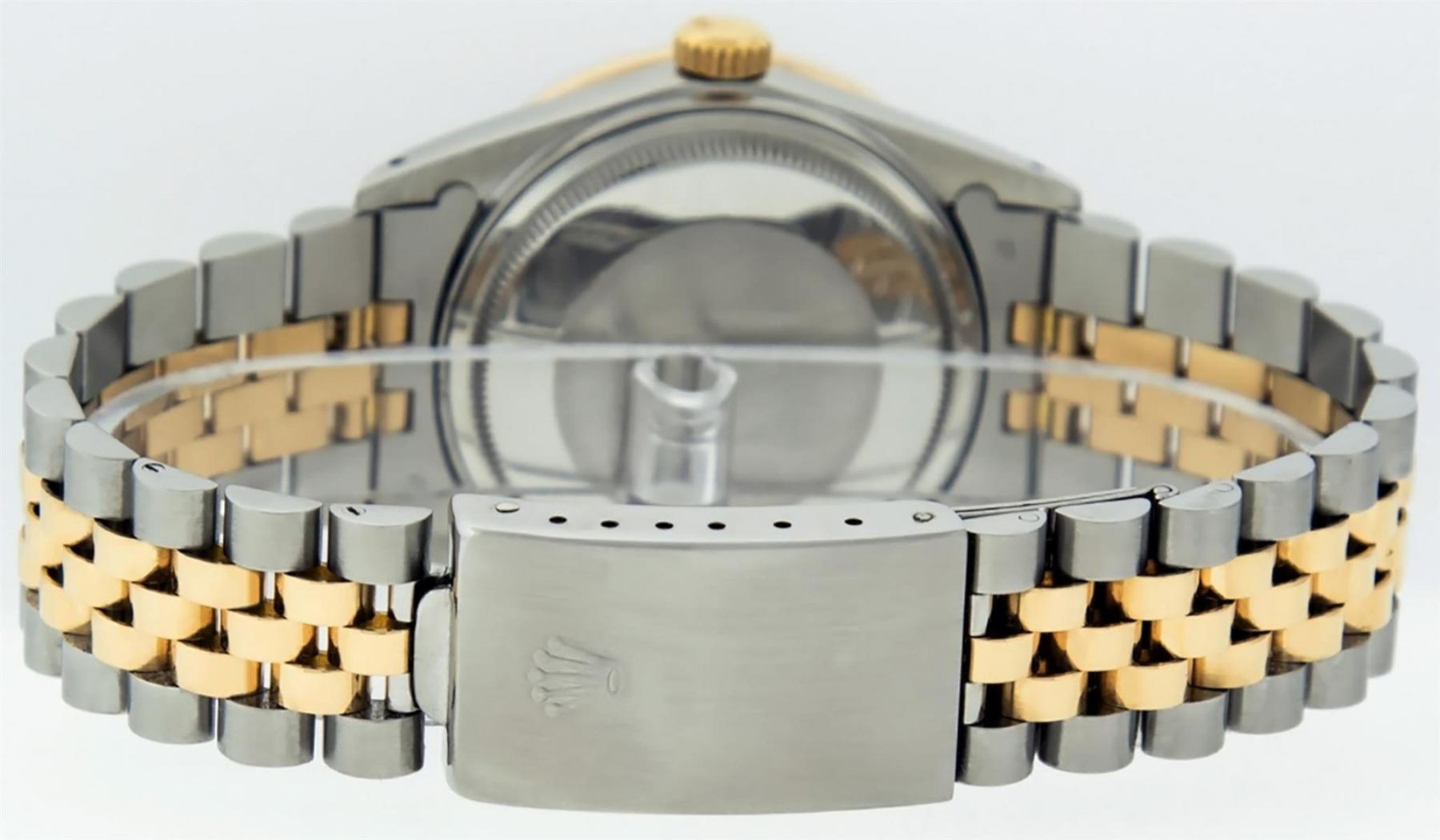 Rolex Mens 2 Tone 14K MOP Roman Pyramid Diamond Bezel Datejust Wristwatch