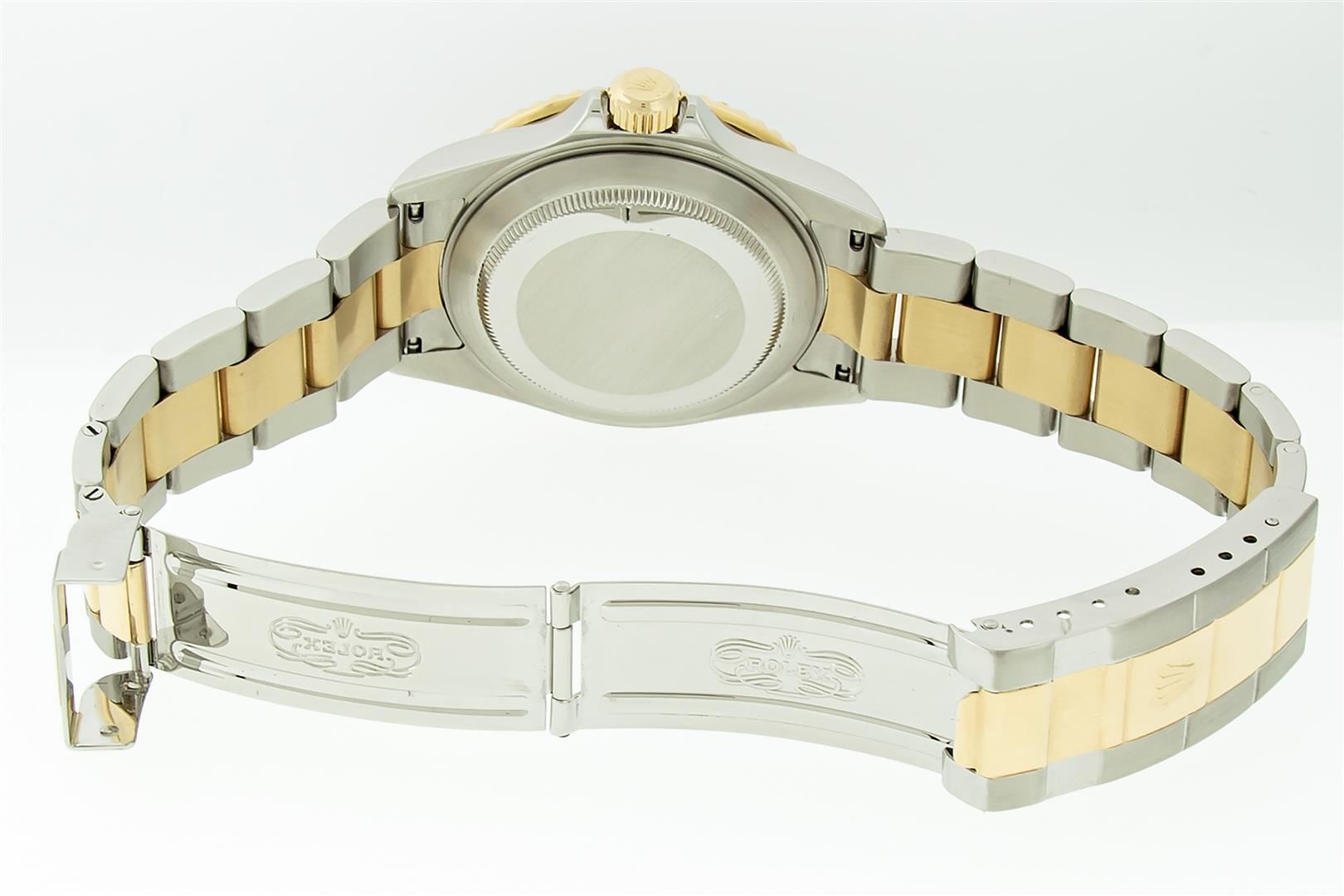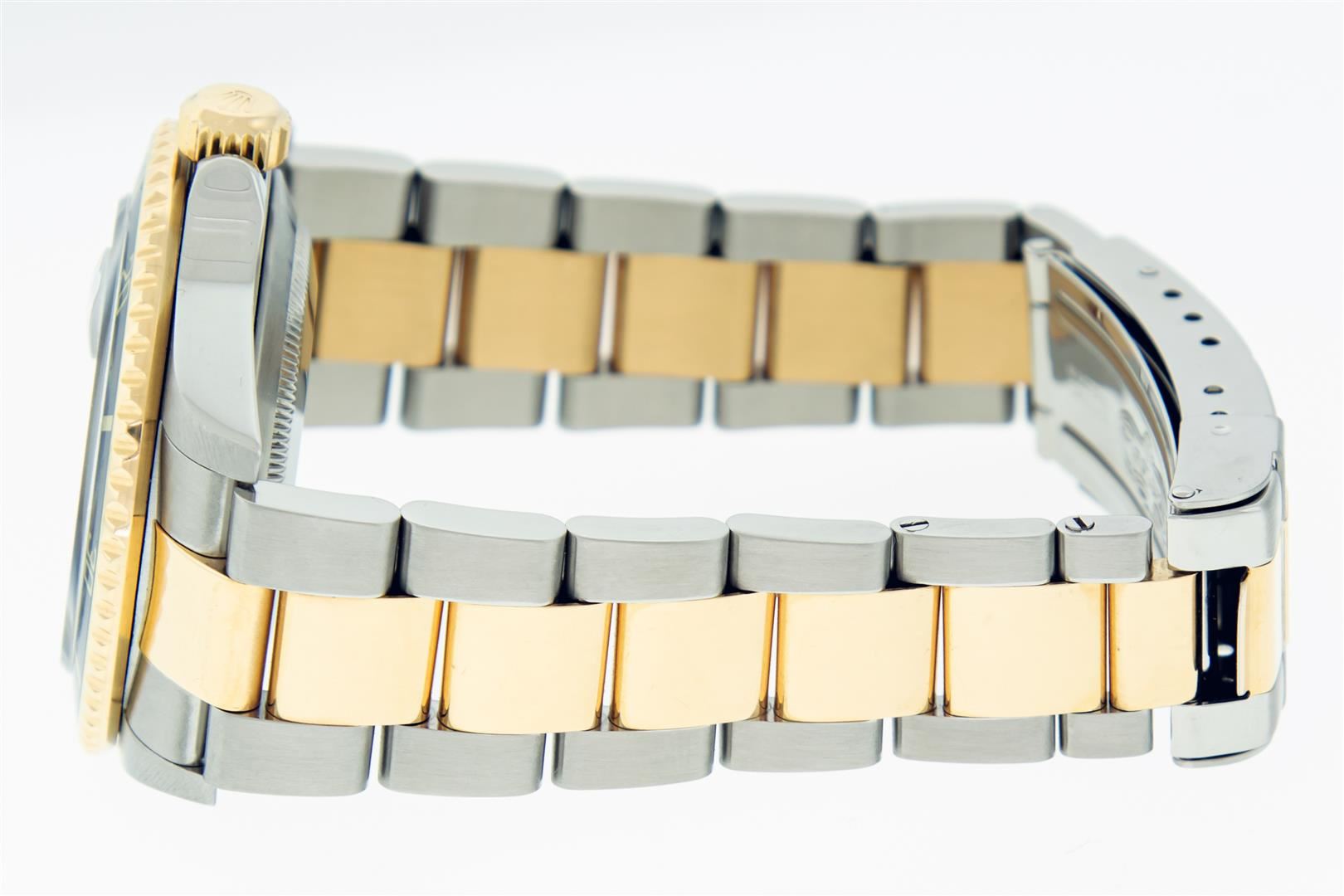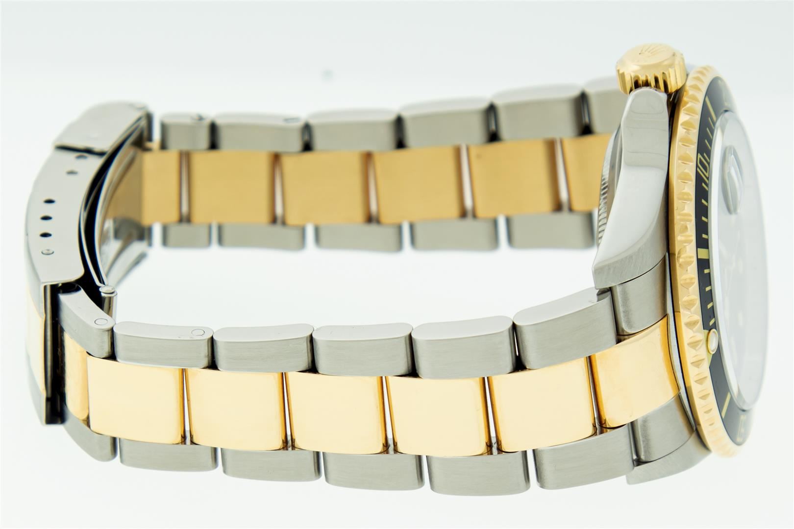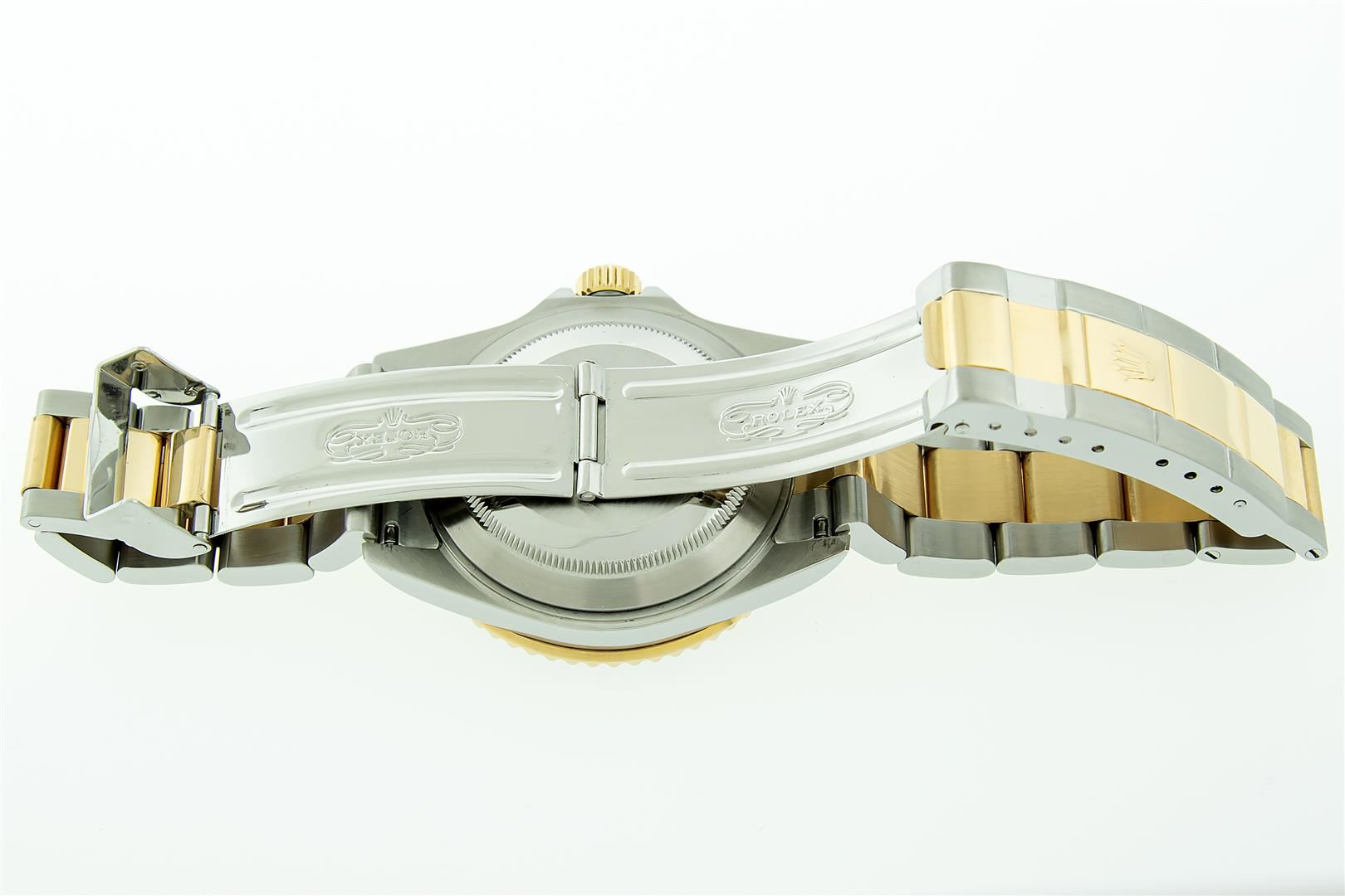 One Mens Pre Owned Rolex Two Tone 18K Yellow Gold And Stainless Steel Submariner With Date Polished, Serviced & Electronically Tested, Rolex Stainless Steel Case: 40mm, Yellow Gold Crown, Rolex Bezel: 18K Yellow Gold Rotatable Bezel With Blue Insert. Rolex Crystal: Sapphire With Cyclops Lens. Rolex Movement: Automatic Winding Movement Caliber 3135. Rolex Dial: Rolex Black Submariner Dial with Luminous Index Hour Markers, Date Window: 3 O'Clock Position Date Display, Model: Submariner, Quickset, Condition: G-6 Extra Fine. Rolex Bracelet: Stainless Steel and Yellow Gold Oyster Band. Bright Polish & Satin Finish. 7.0 Inch Length, Adjustable. Standard Yellow Gold Clasp, With Rolex Logo. This Watch Comes With A Rolex Box.