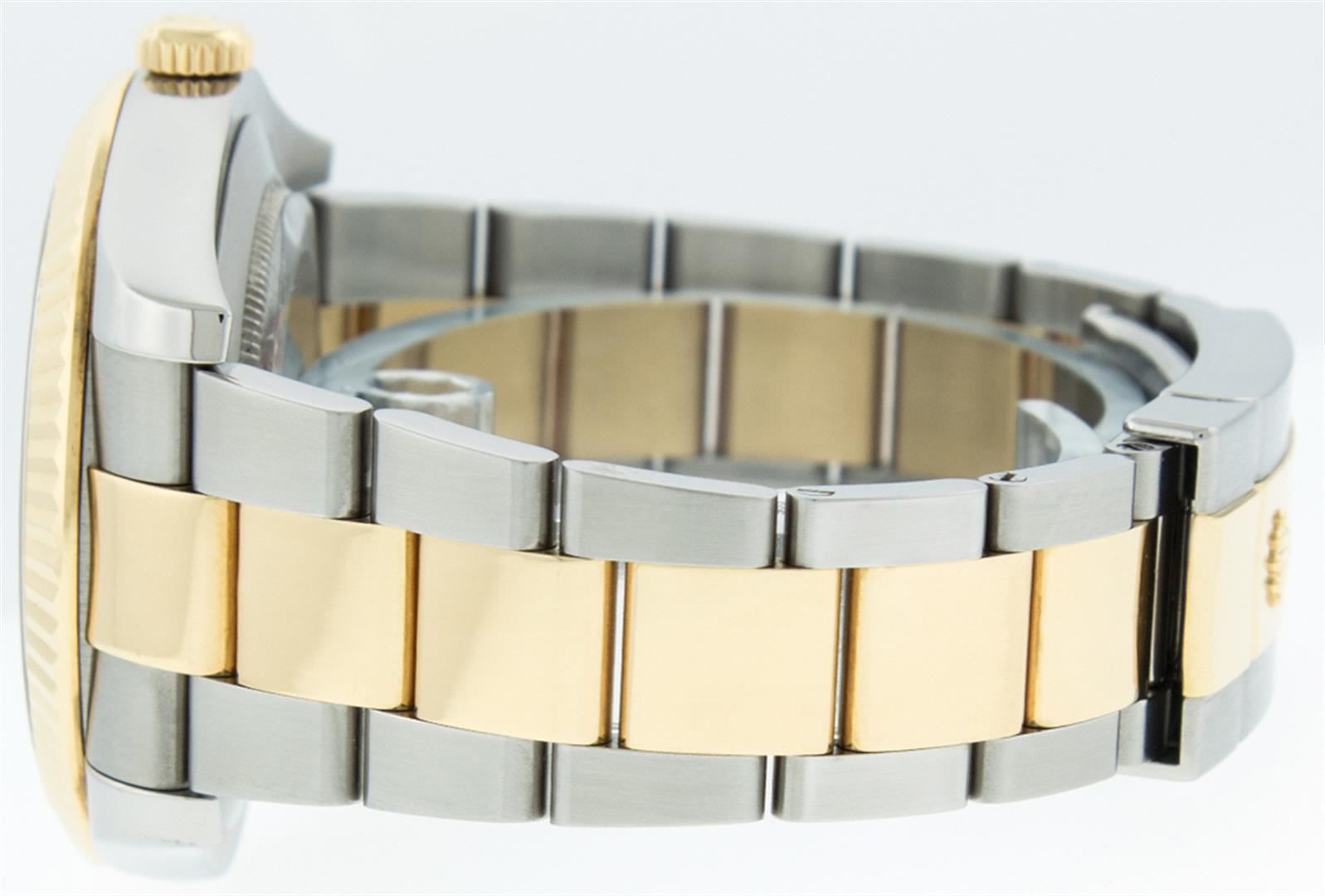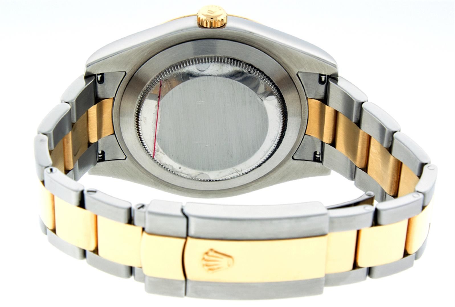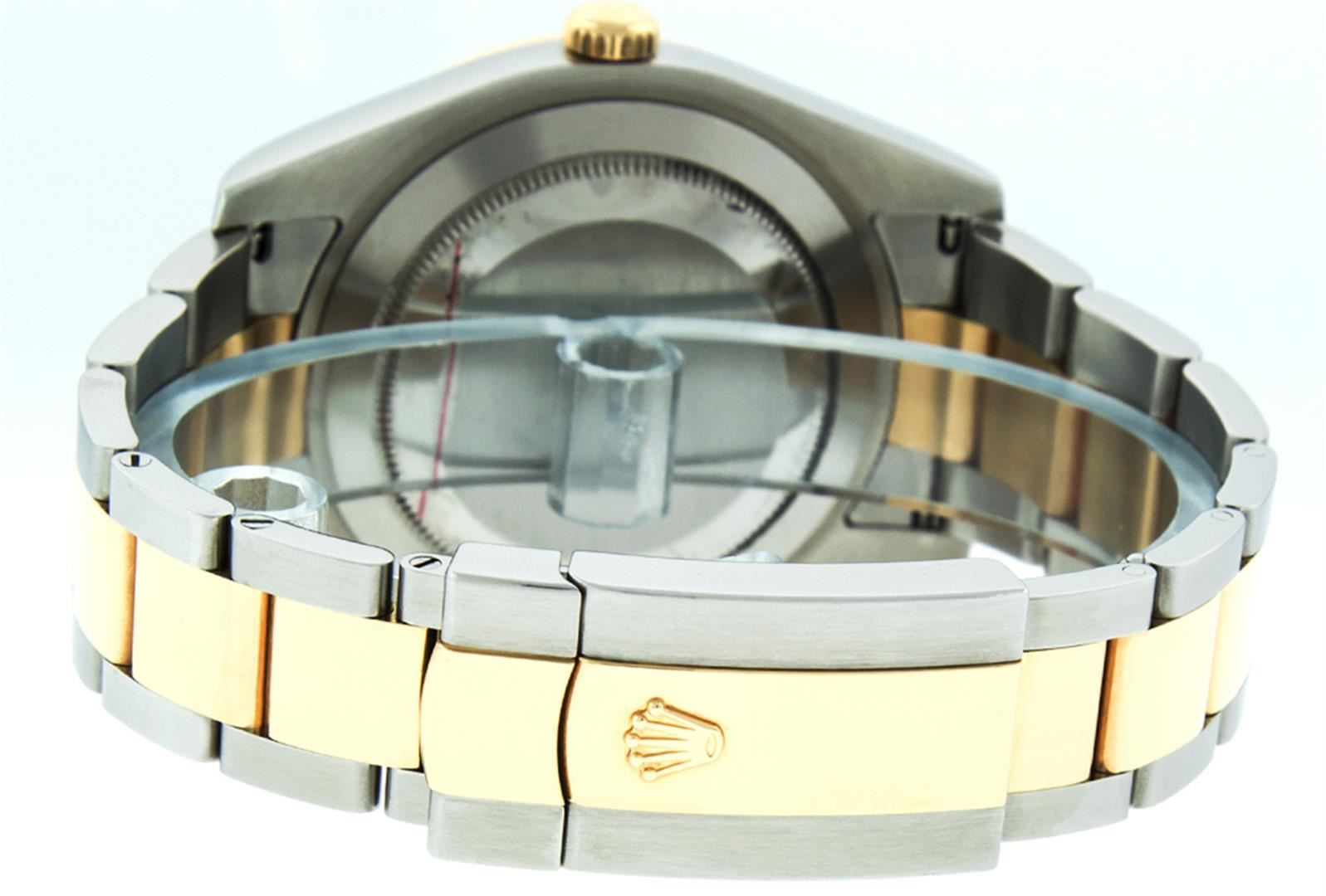 One Mens Rolex Datejust 2 41MM Polished, Serviced & Electronically Tested, Stainless Steel Case: 41mm, Rolex Yellow Gold Crown, Rolex Bezel: 18K Yellow Gold Fluted Bezel, Rolex Crystal: Sapphire With Magnified Date Window. Hands: Luminescent Hands. Rolex Movement: Automatic Winding Movement 3136. Rolex Dial: Black Roman With Dash Track, Date Window: 3 O'Clock Position Date Display, Quickset, Model: Datejust 2 116333. Condition: G-6 Extra Fine, Rolex Bracelet: 18K Yellow Gold And Stainless Oyster Band. Bright Polish & Satin Finish. 7.0 Inch Length, Adjustable. Standard Clasp, With Rolex Logo. This Watch Has Been Serviced Time Tested And Is In Excellent Condition It Is Free Of All Scratches And Dents.