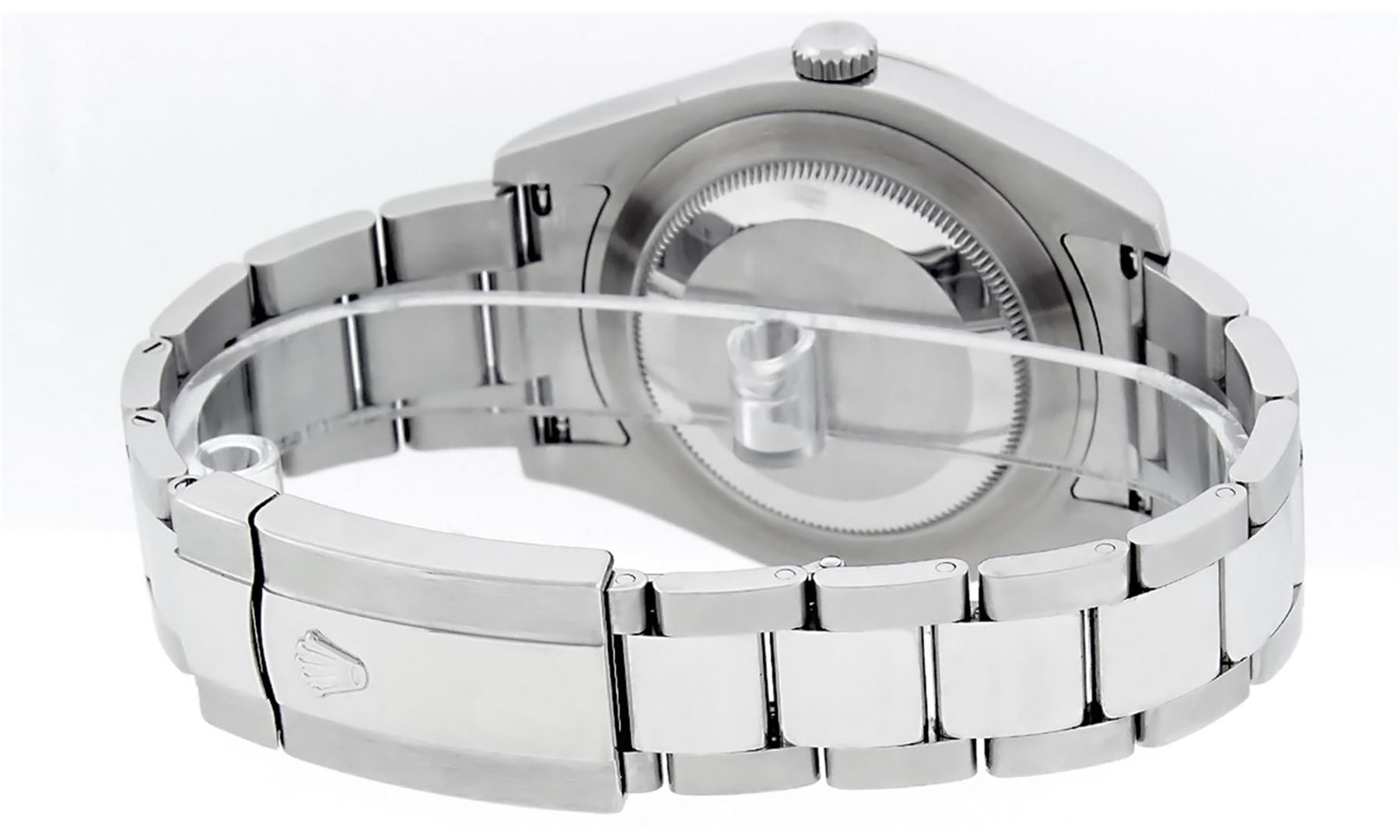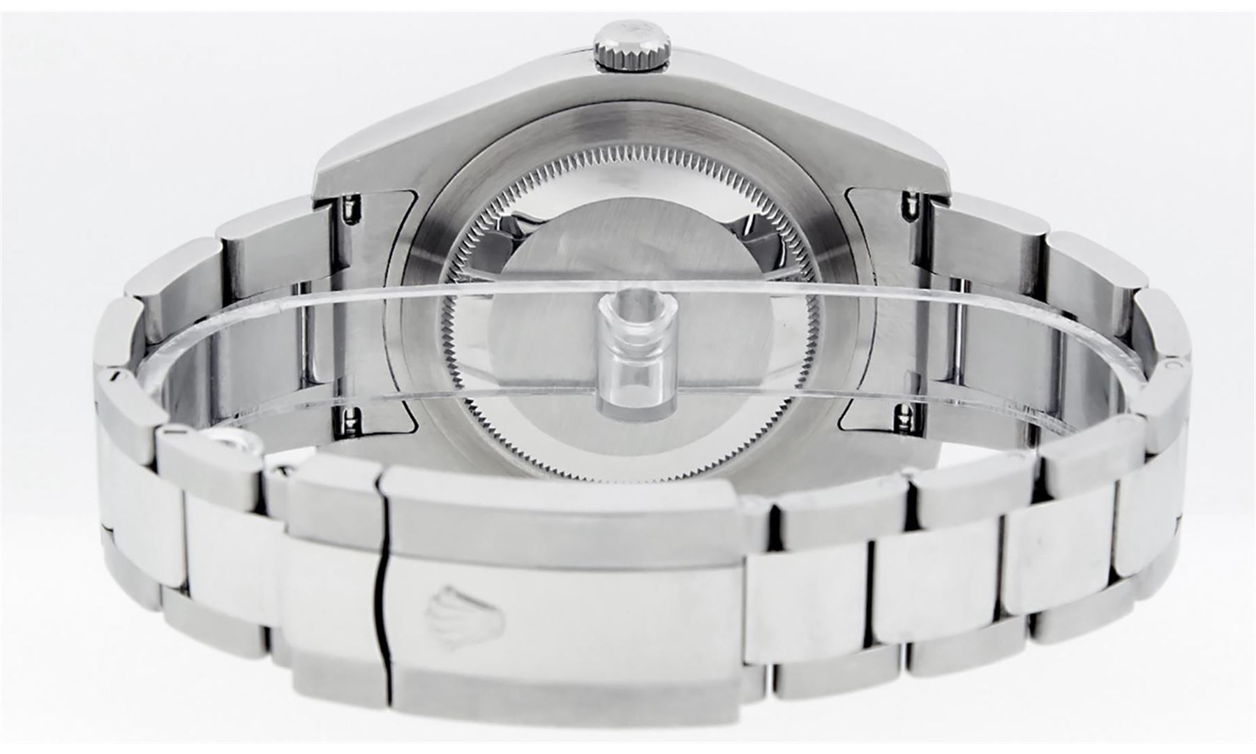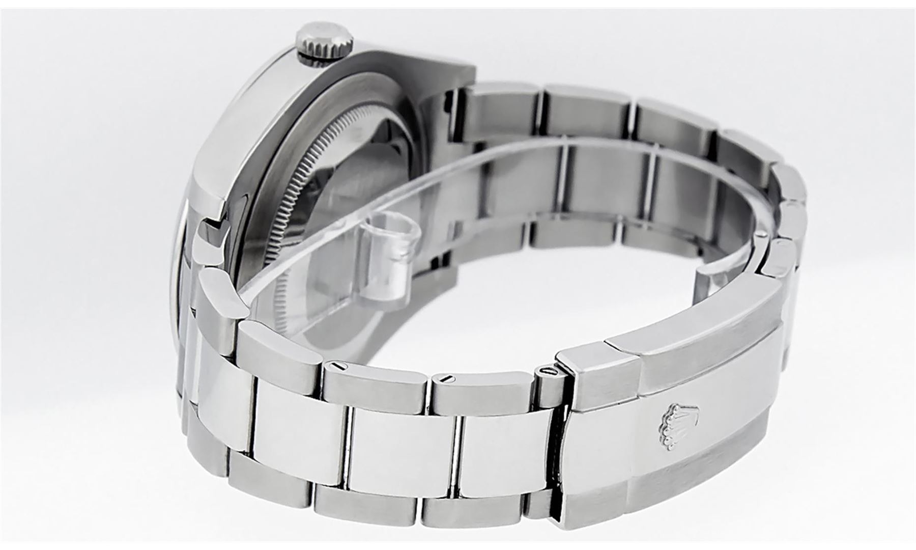 One Mens Rolex Datejust 2 Polished With Shiny Finish, Serviced & Electronically Tested, Stainless Steel Case: 41mm, Stainless Steel Crown, Bezel: Stainless Steel Smooth Bezel, Crystal: Scratch Resistant Synthetic Sapphire Cyclops Lens. Movement: Automatic Winding Movement Caliber 3136. Custom Dial: Blue Roman Diamond Dial, Diamond Color: G To H, Clarity: SI-VS. Date Window: 3 O'Clock Position Date Display, Quickset, Model: Datejust 2. Condition: G-6 Extra Fine The Watch Is In Very Good Condition Free Of All Scratches And Dents. Bracelet: Stainless Steel Oyster Band. Bright Polish & Satin Finish. 7.5 Inch Length, Adjustable. Standard Clasp, With Rolex Logo. This Watch Has Been Serviced Time Tested And Is In Excellent Condition It Is Free Of All Scratches And Dents. This Watch Comes With A Rolex Box.