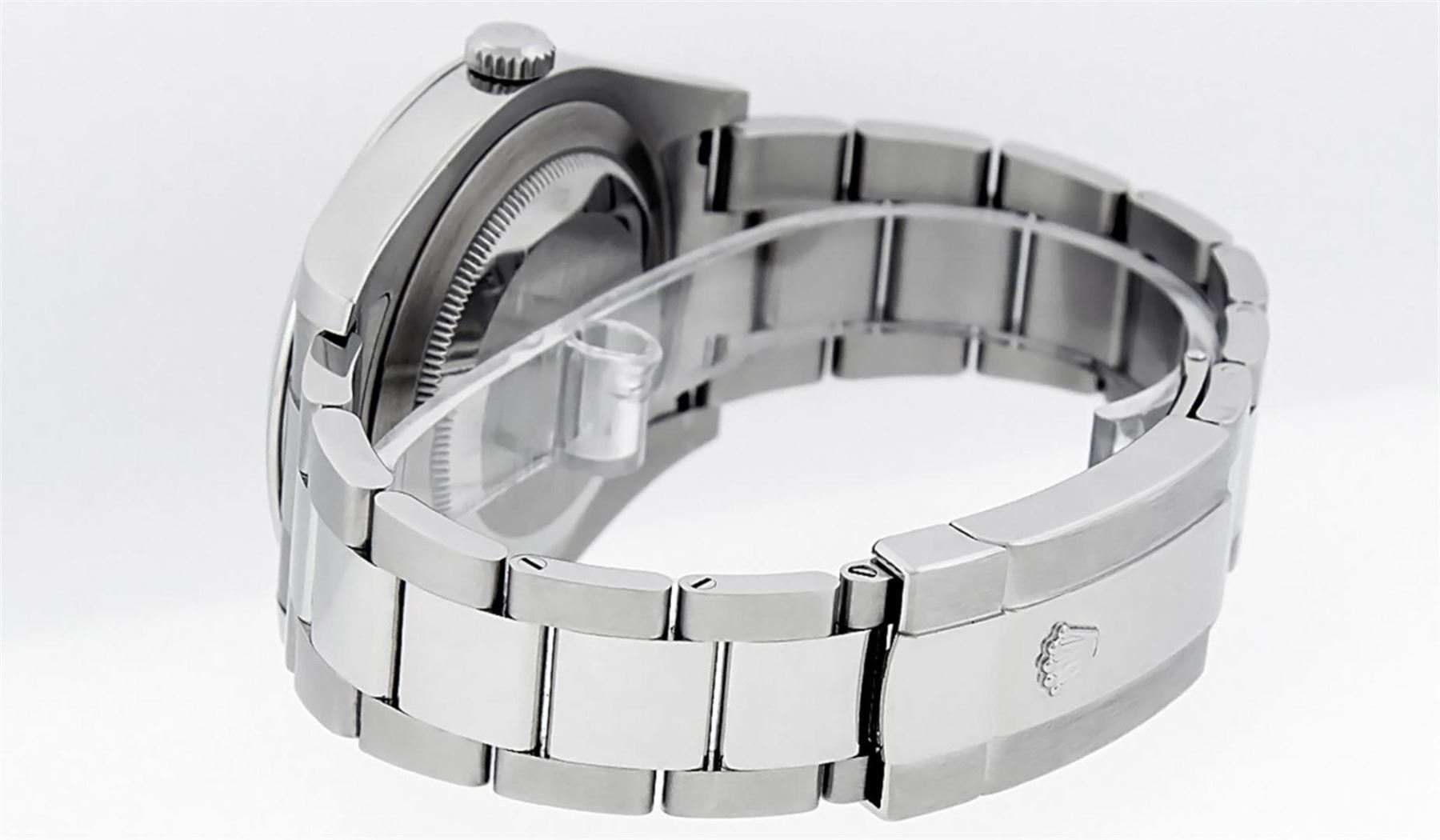 One Mens Rolex Datejust 2 Polished With Shiny Finish, Serviced & Electronically Tested, Stainless Steel Case: 41mm, Stainless Steel Crown, Bezel: Stainless Steel Smooth Bezel, Crystal: Scratch Resistant Synthetic Sapphire Cyclops Lens. Movement: Automatic Winding Movement Caliber 3136. Custom Dial: Blue Roman Diamond Dial, Diamond Color: G To H, Clarity: SI-VS. Date Window: 3 O'Clock Position Date Display, Quickset, Model: Datejust 2. Condition: G-6 Extra Fine The Watch Is In Very Good Condition Free Of All Scratches And Dents. Bracelet: Stainless Steel Oyster Band. Bright Polish & Satin Finish. 7.5 Inch Length, Adjustable. Standard Clasp, With Rolex Logo. This Watch Has Been Serviced Time Tested And Is In Excellent Condition It Is Free Of All Scratches And Dents. This Watch Comes With A Rolex Box.