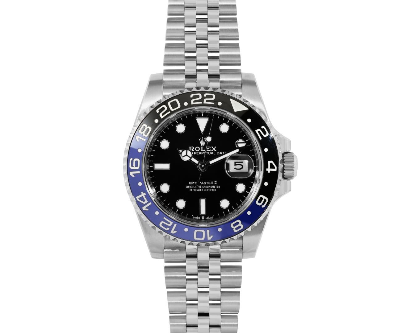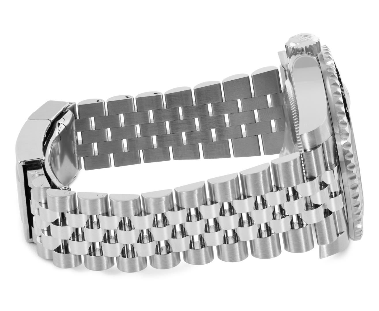 One Mens Pre Owned Rolex Stainless Steel GMT Master 2 Polished, Serviced And Electronically Tested, Rolex Stainless Steel Case: 40mm, Rolex Stainless Steel Crown, Rolex Bezel: Stainless Steel Bi Directional Rotatable Bezel With Blue And Black Insert. Rolex Crystal: Sapphire Crystal With Magnified Date Window. Rolex Movement: Automatic Winding Movement Caliber 3285. Dial: Black Dial. Functions: Quickset, GMT Hand. Date Window: 3 O'Clock Position Date Display, Model: GMT Master 2, Quickset, Condition: G-6 Extra Fine. Rolex Bracelet: Stainless Steel Jubilee Band. Bright Polish And Satin Finish. 7.25 Inch Length, Adjustable. Standard Clasp, With Rolex Logo. This Watch Has Been Serviced Time Tested And Is In Excellent Condition It Is Free Of All Scratches And Dents. This Watch Comes With A Rolex Box And Card.