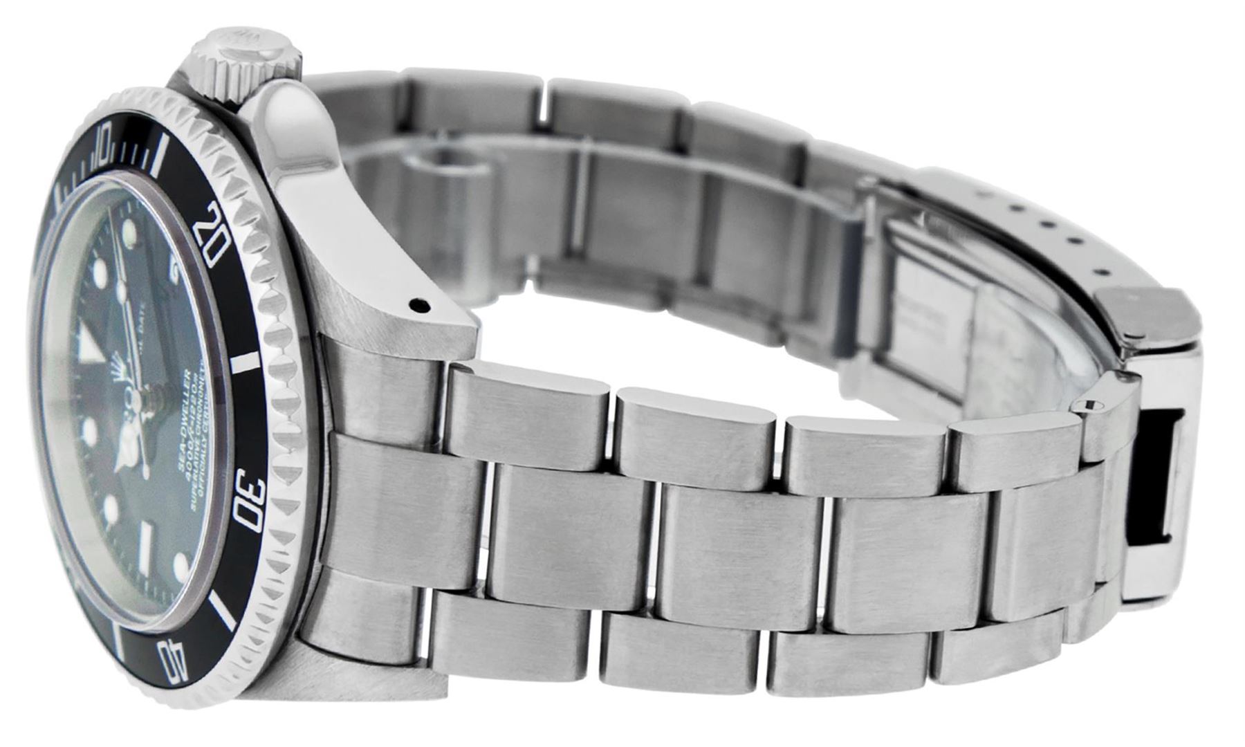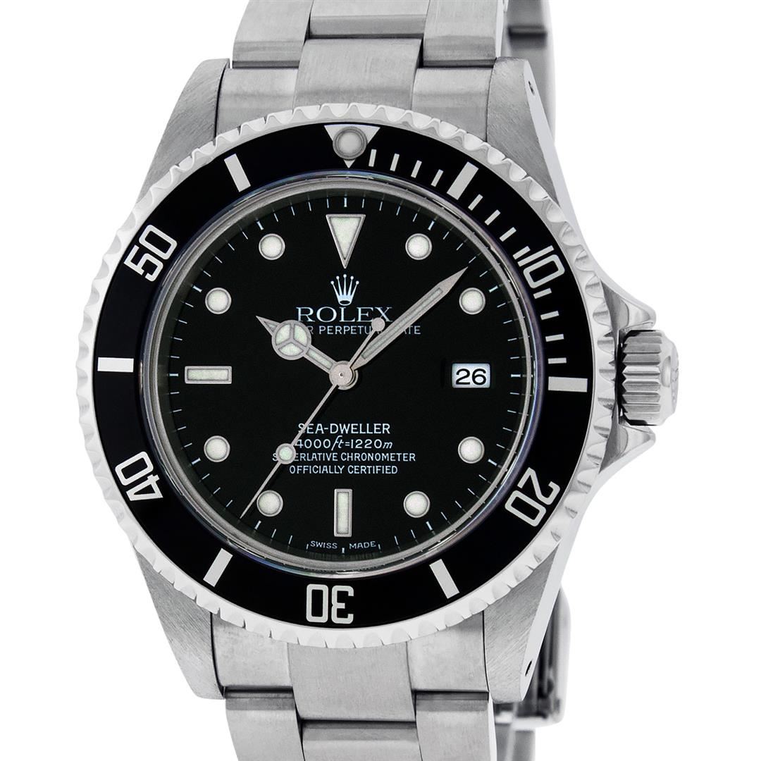 One Mens Pre Owned Rolex Stainless Steel Sea Dweller Polished, Serviced & Electronically Tested, Rolex Stainless Steel Case: 40mm, Rolex Stainless Steel Crown, Rolex Bezel: Stainless Steel Rotatable Bezel With Black Insert. Rolex Crystal: Sapphire Crystal With Magnified Date Window. Rolex Movement: Automatic Winding Movement Caliber 3135. Dial: Rolex Sea-Dweller Black Dial, Date Window: 3 O'Clock Position Date Display, Model: Sea-Dweller, Quickset, Condition: G-6 Extra Fine. Rolex Bracelet: Stainless Steel Oyster Band. Bright Polish & Satin Finish. 7.0 Inch Length, Adjustable. Standard Clasp, With Rolex Logo.