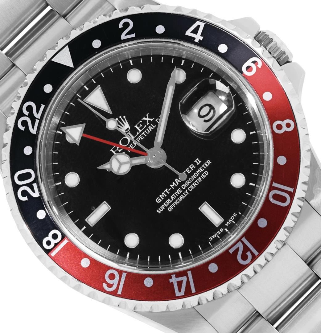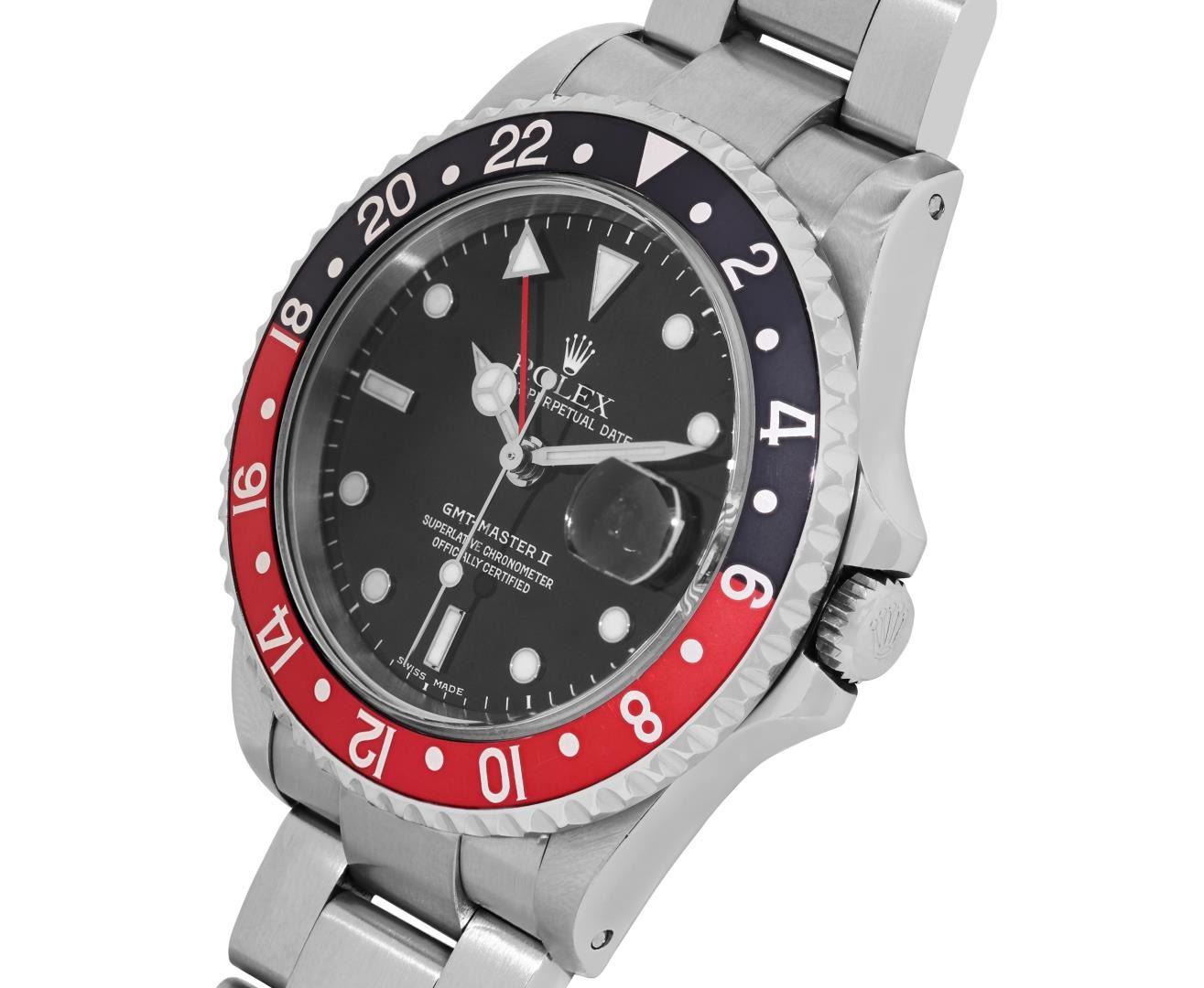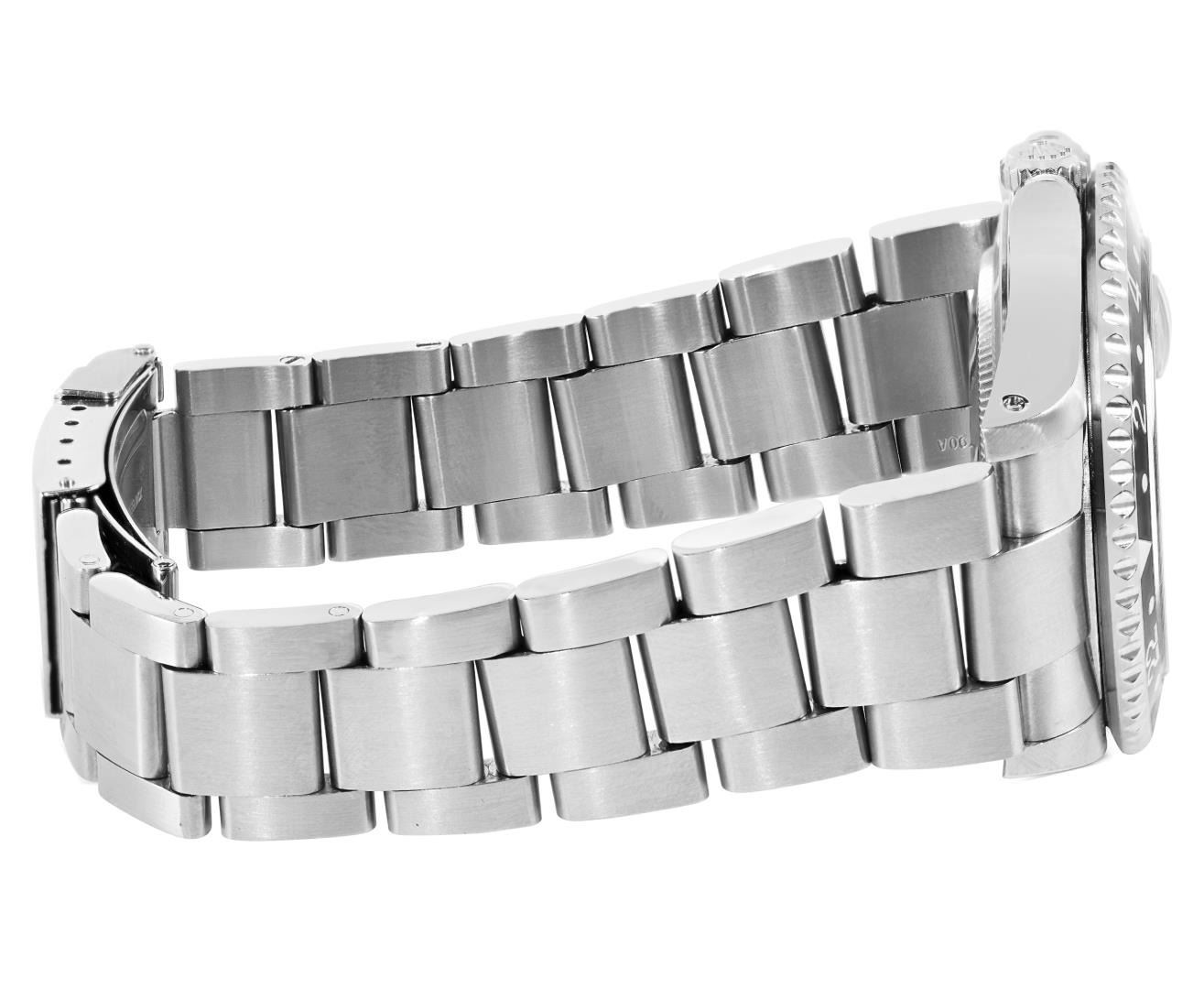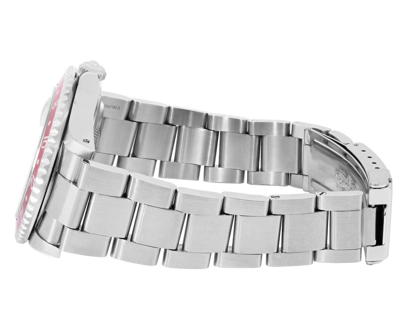 One Mens Pre Owned Rolex Stainless Steel GMT Master 2 Polished, Serviced And Electronically Tested, Rolex Stainless Steel Case: 40mm, Rolex Stainless Steel Crown, Rolex Bezel: Stainless Steel Bi Directional Rotatable Bezel With Black And Red Insert. Rolex Crystal: Sapphire Crystal With Magnified Date Window. Rolex Movement: Automatic Winding Movement Caliber 3185. Dial: Black Dial. Functions: GMT Hand. Date Window: 3 O'Clock Position Date Display, Model: GMT Master 2, Quickset, Condition: G-6 Extra Fine. Rolex Bracelet: Stainless Steel Oyster Band. Bright Polish And Satin Finish. 7.0 Inch Length, Adjustable. Standard Clasp, With Rolex Logo. This Watch Has Been Serviced Time Tested And Is In Excellent Condition It Is Free Of All Scratches And Dents. This Watch Comes With A Rolex Box.