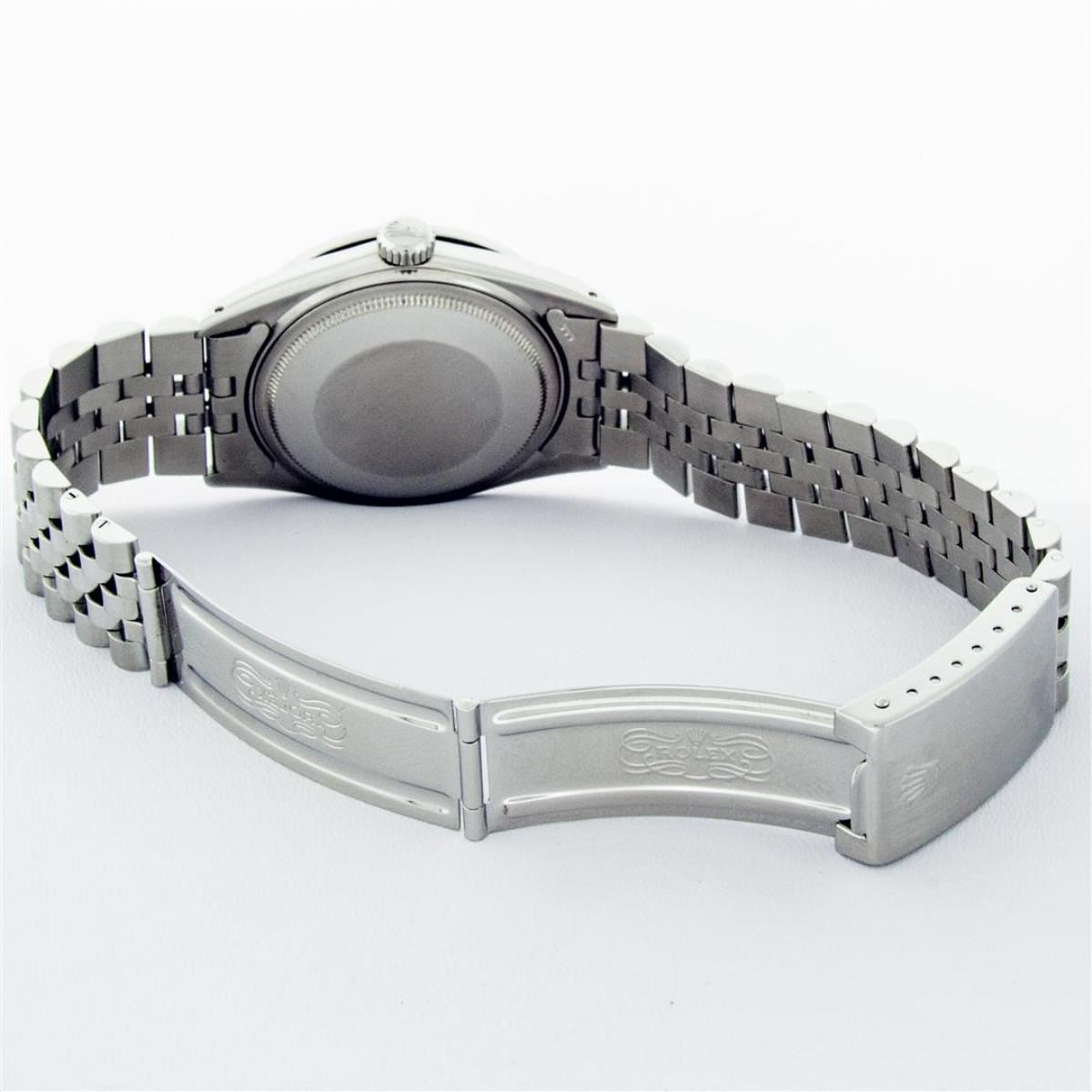 One Mens Rolex Stainless Steel Datejust Polished Bright with Satin Finish, This Watch Has Been Serviced & Electronically Tested, Stainless Steel Case: 36mm, Stainless Steel Crown, Custom Bezel: New Stainless Steel Beadset Diamond Bezel, Diamond Count: 54 Diamonds In Bezel, Total Weight 1.00 Carat, Clarity: SI-VS, Color: G to H. Custom Crystal: New Synthetic Sapphire Cyclops Lens. Custom Hands: New Luminescent Hands. Movement: Automatic Winding Movement Caliber 3035. Custom Dial: Red String Diamond Dial, Diamond Count: 58 Diamonds In Dial, Color: G to H, Clarity: VS2-SI1. Date Window: 3 O'Clock Position Date Display, Quickset, Model: Datejust. Condition: G-6 Extra Fine. Bracelet: Stainless Steel Jubilee Band. Bright Polish & Satin Finish. 7.0 Inch Length, Adjustable. Standard Clasp, With Rolex Logo. This Watch Has Been Serviced Time Tested And Is In Excellent Condition It Is Free Of All Scratches And Dents.