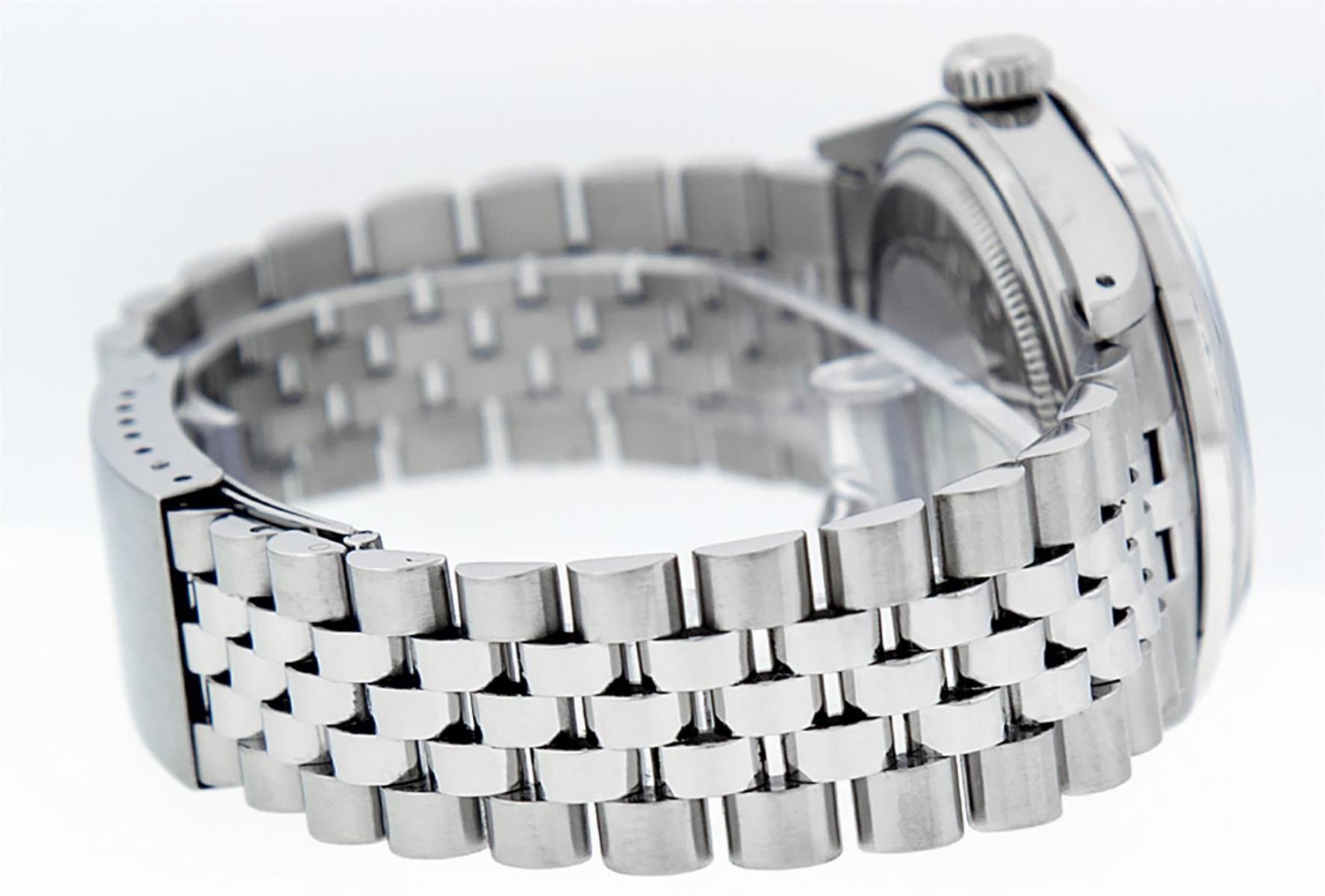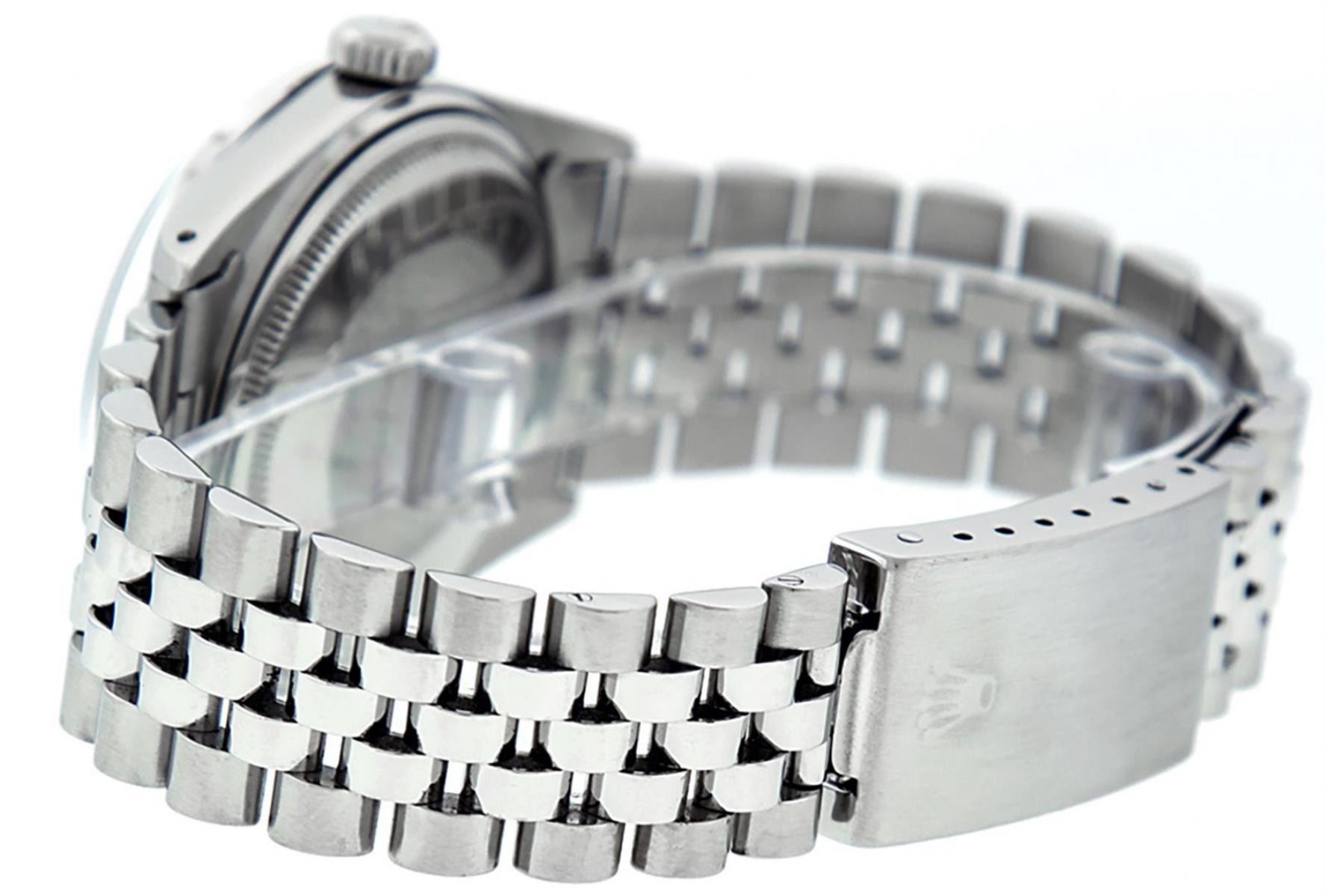 One Mens Stainless Steel Rolex Datejust Polished, Serviced & Electronically Tested, Stainless Steel Case: 36mm, Stainless Steel Crown, Custom Bezel: New 18K White Gold Beadset Diamond Bezel, Diamond Count: 44 Diamonds In Bezel, Total Weight 1.00 Carat, Clarity: SI-VS, Color: G to H. Custom Crystal: New Scratch Resistant Synthetic Sapphire Cyclops Lens. Custom Hands: New Luminescent Hands. Movement: Automatic Winding Movement Caliber 3035. Custom Dial: Slate Grey Diamond Dial, Diamond Count: 10 Diamonds in Dial, G To H In Color, Clarity: SI-VS. Date Window: 3 O'Clock Position Date Display, Quickset, Model: Datejust. Condition: G-6 Extra Fine. Bracelet: Stainless Steel Jubilee Band. Bright Polish & Satin Finish. 7.0 Inch Length, Adjustable. Standard Clasp, With Rolex Logo. This Watch Has Been Serviced Time Tested And Is In Excellent Condition It Is Free Of All Scratches And Dents.