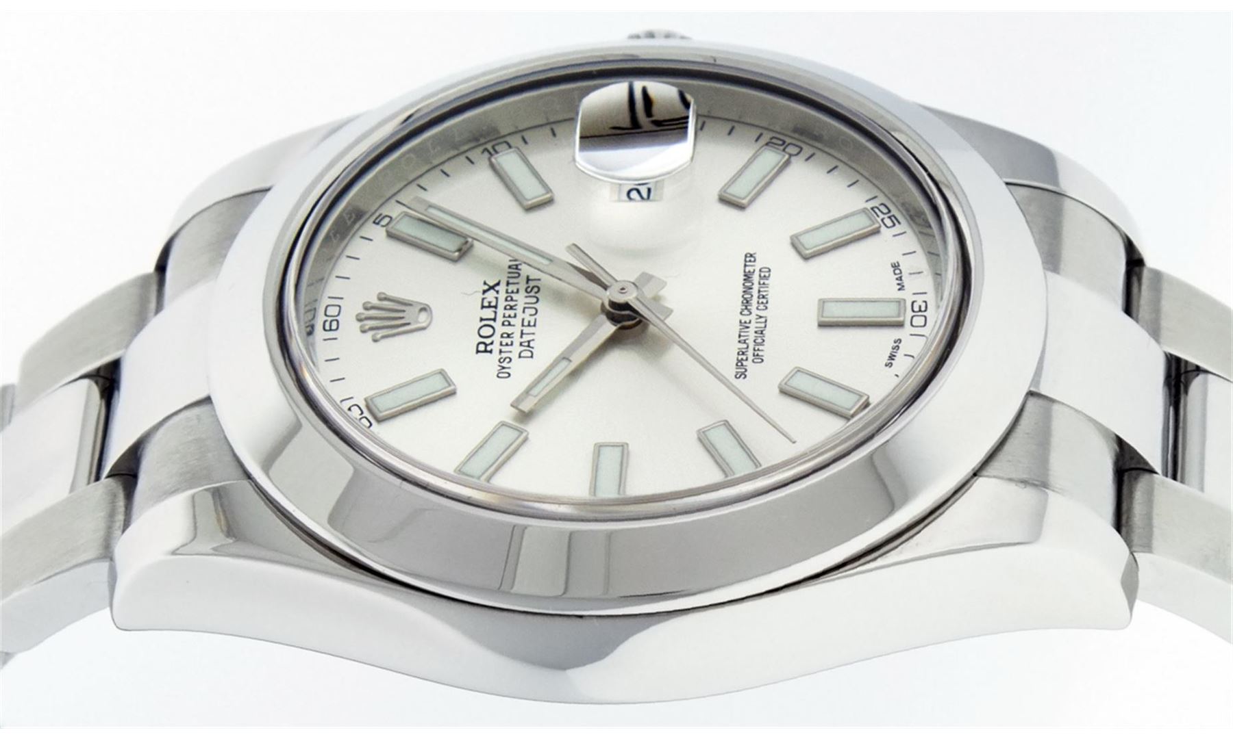 One Mens Rolex Datejust 2 41MM Polished, Serviced & Electronically Tested, Rolex Stainless Steel Case: 41mm, Stainless Steel Crown, Rolex Bezel: Stainless Steel Smooth Bezel, Crystal: Sapphire With Magnified Date Window. Hands: Luminescent Hands. Rolex Movement: Automatic Winding Movement 3136. Rolex Dial: White Index With Dash Track. Date Window: 3 O'Clock Position Date Display, Quickset, Model: Datejust 2. Condition: G-6 Extra Fine. Rolex Bracelet: Stainless Steel Oyster Band. Bright Polish & Satin Finish. 7.0 Inch Length, Adjustable. Standard Clasp, With Rolex Logo. This Pre Owned Watch Has Been Serviced Time Tested And Is In Excellent Condition It Is Free Of All Scratches And Dents.