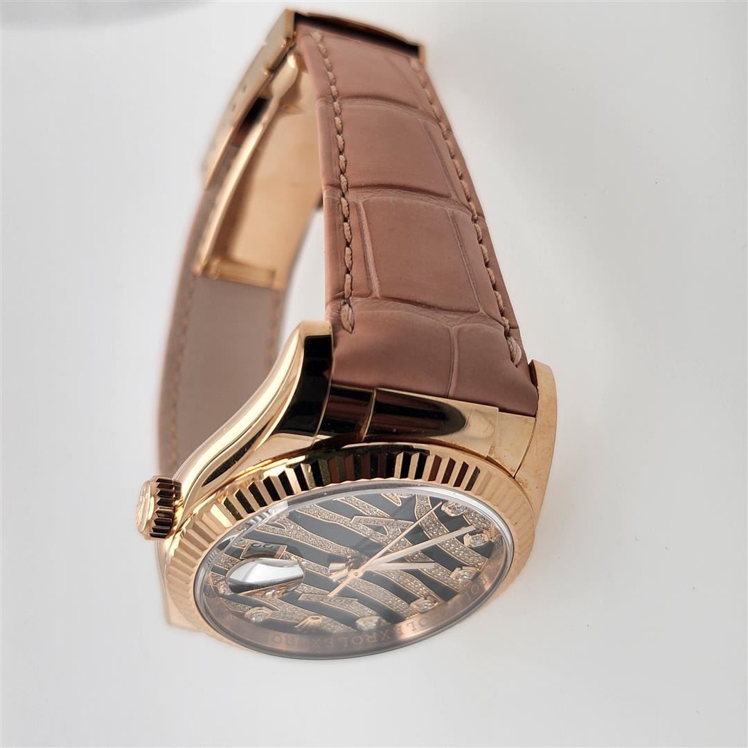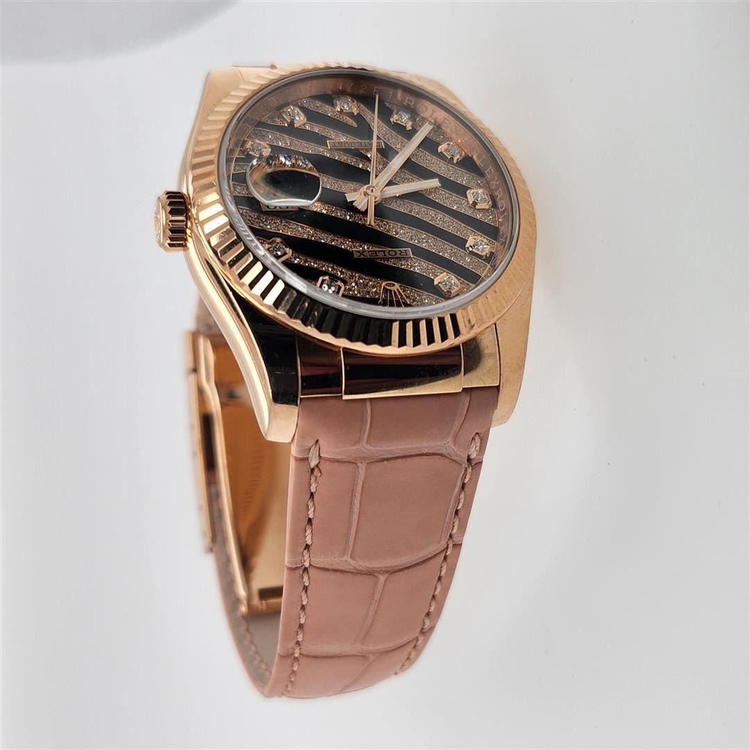 One Rolex Rose Gold Genuine Alligator Leather Wristwatch.