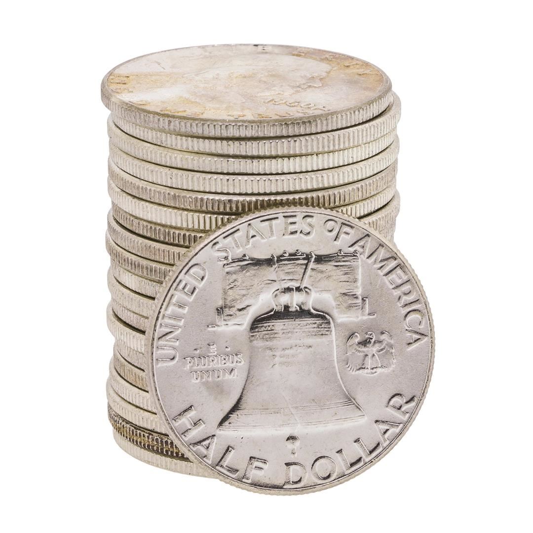 One Roll of (20) 1960 Brilliant Uncirculated Franklin Half Dollar Coins.