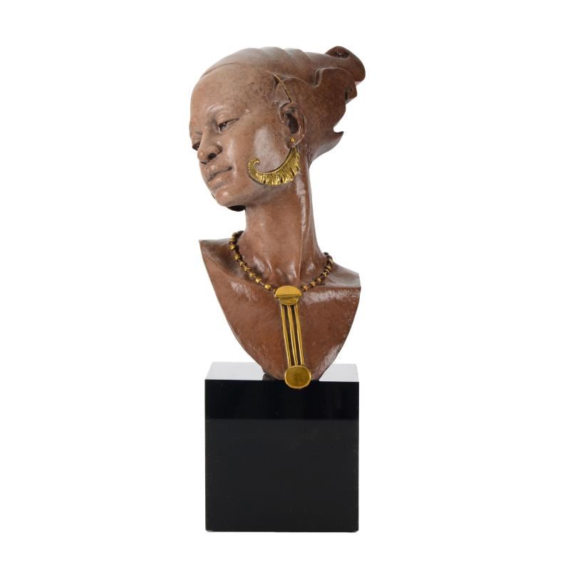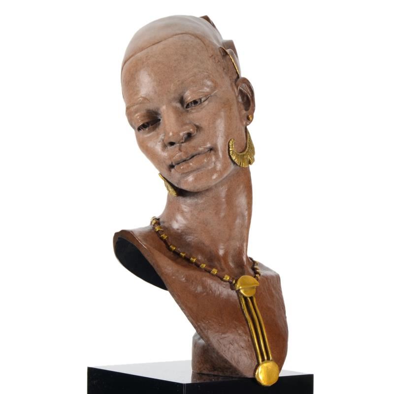 "Romance" is a limited edition mixed media sculpture on marble base by Thomas Blackshear, numbered out of 1250. Includes Certificate of Authenticity. Measures approx. 6" x 5" x 14"; 10lb.