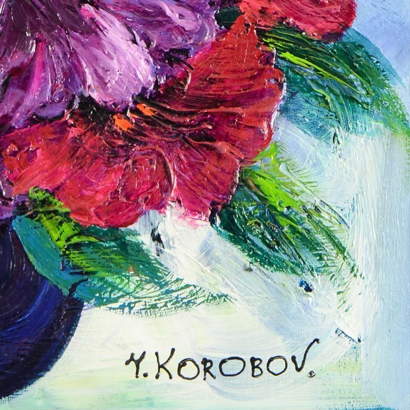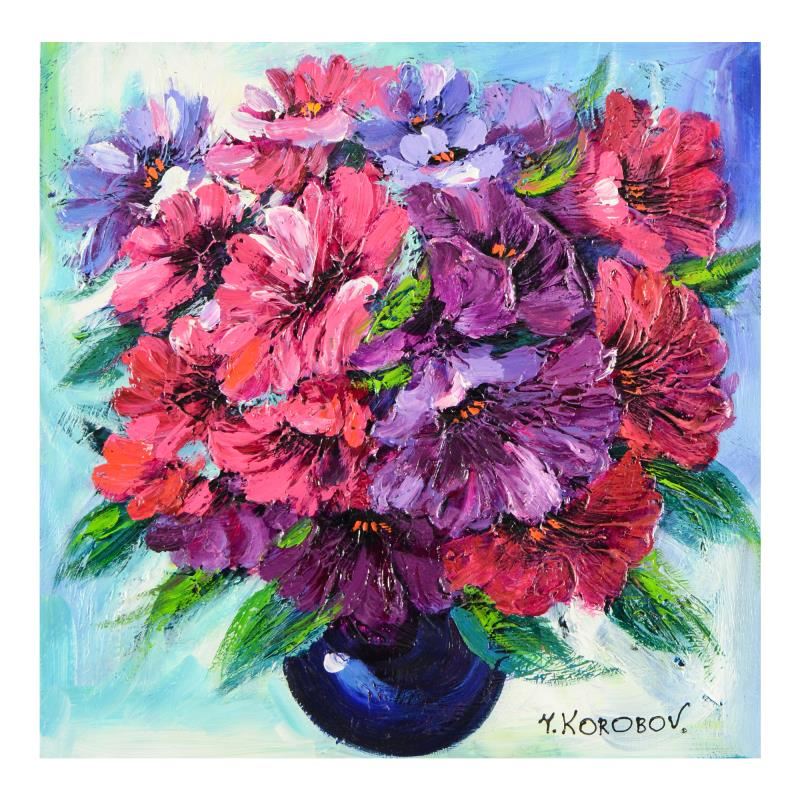 Royal Beauty is an original acrylic painting on canvas by Yana Korobov, hand signed by the artist. Includes Letter of Authenticity. Measures approx. 20" x 20" (image).