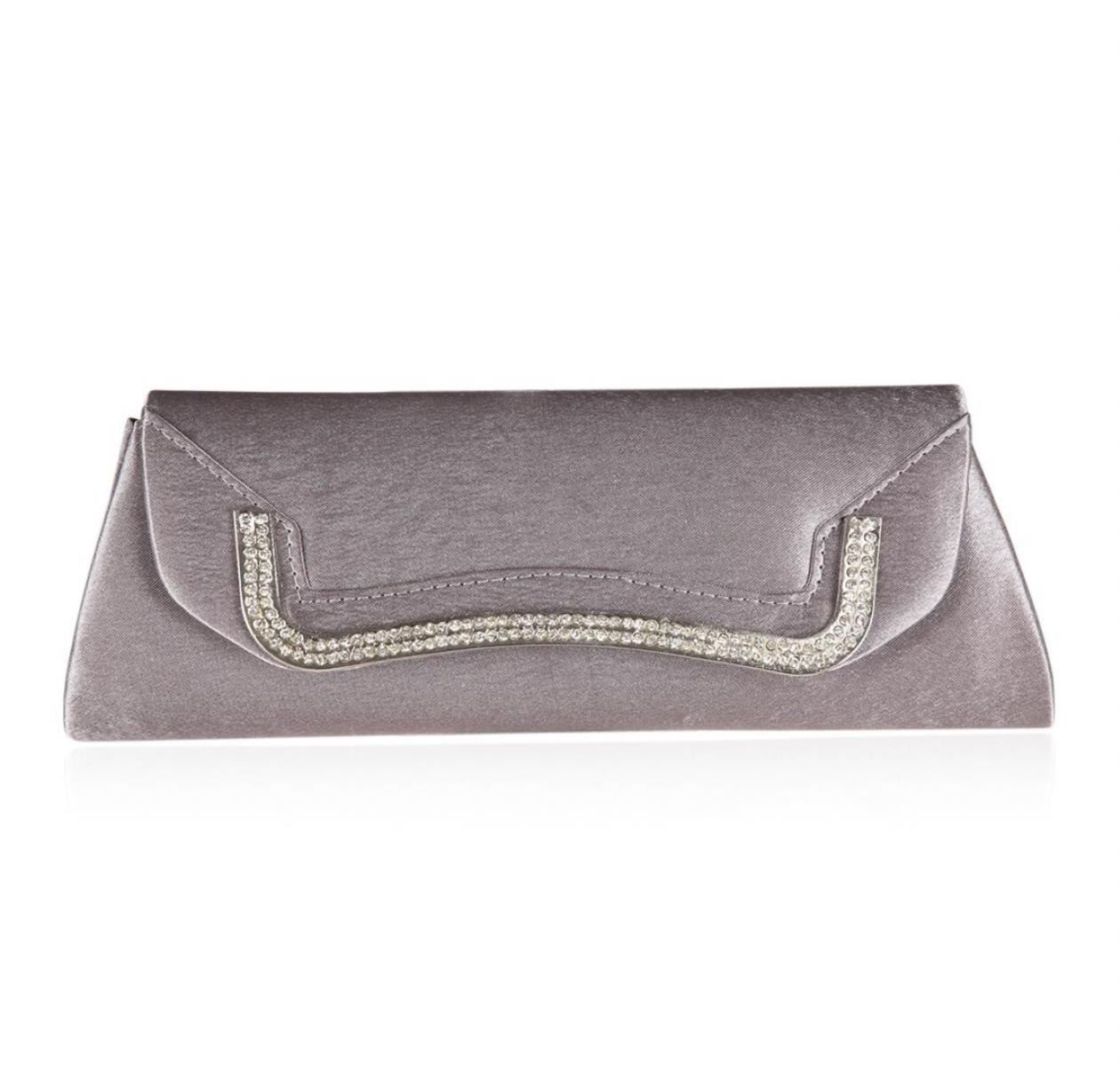 A SCP Evening Bag. Silver with an embellished trim and chain strap.