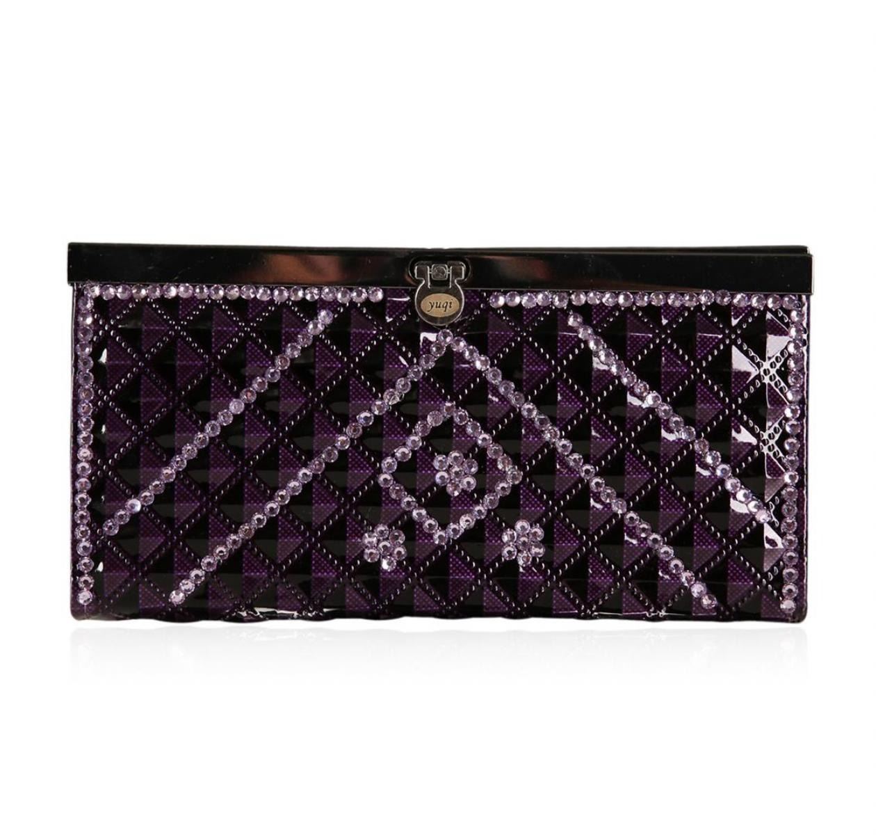 A SCP Wallet embellished with stones. Purple Patent
