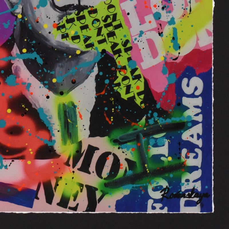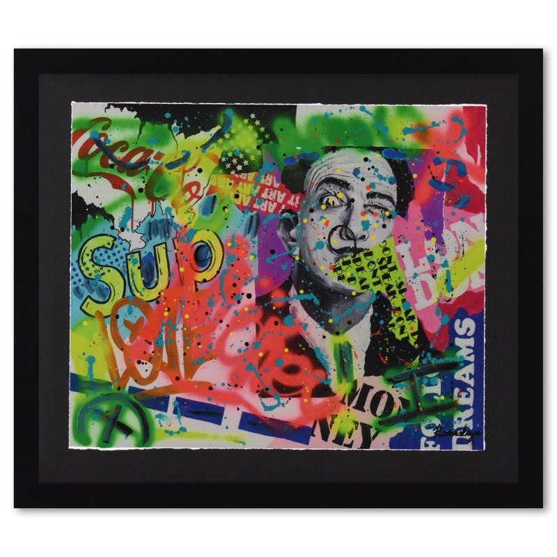 "SUP" is a one-of-a-kind mixed media on deckle edge paper by Nastya Rovenskaya, Hand signed by the artist. This piece comes floating in a custom frame. Includes Letter of Authenticity. Measures approx. 31.5" x 27.5" (framed), 24" x 20" (image).