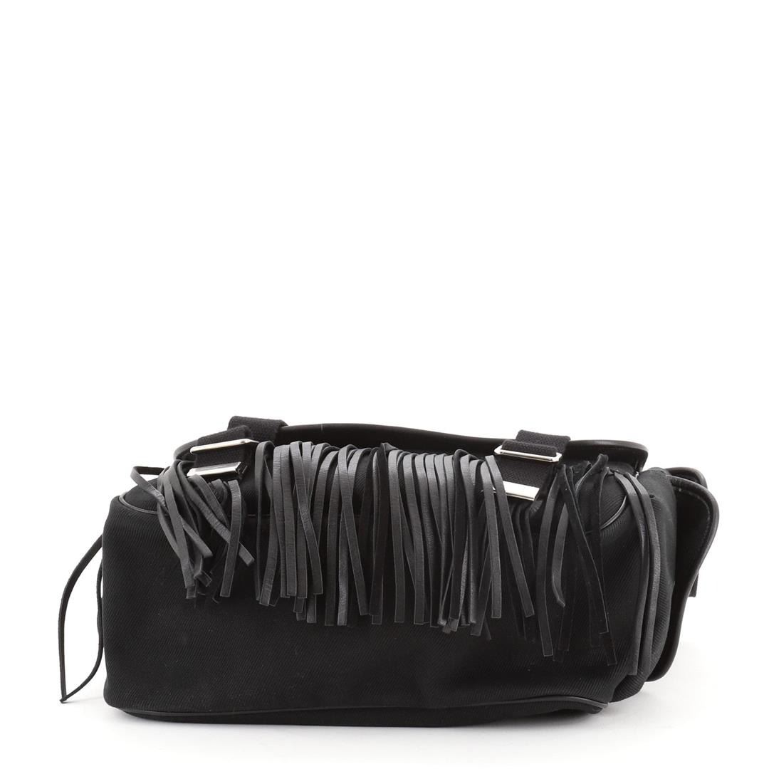 One Saint Laurent YSL Fringe Flap Messenger Bag Canvas with Leather Medium Black. Item is sold AS-IS. All available information is listed in the description and shown in the photo. Saint Laurent Fringe Flap Messenger Bag Canvas with Leather Medium Black Canvas Leather Condition Details: Creasing, wear and minor discoloration on exterior and in interior, scratches on hardware. Height 11.5", Width 11", Depth 5", Strap Drop 12-24