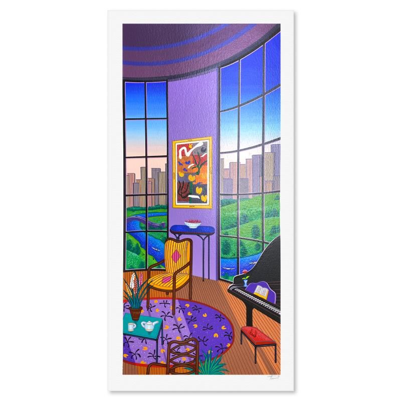 "Salon Rotonde" is a limited edition serigraph on paper by Fanch, EA numbered and hand signed by the artist. Includes Letter of Authenticity. Measures approx. 30" x 14.5" (border), 27.5" x 12.5" (image). This proof came from Fanch Ledan's personal collection. It may have some slight imperfections in the image and border, but it's overall condition was inspected and approved by him.