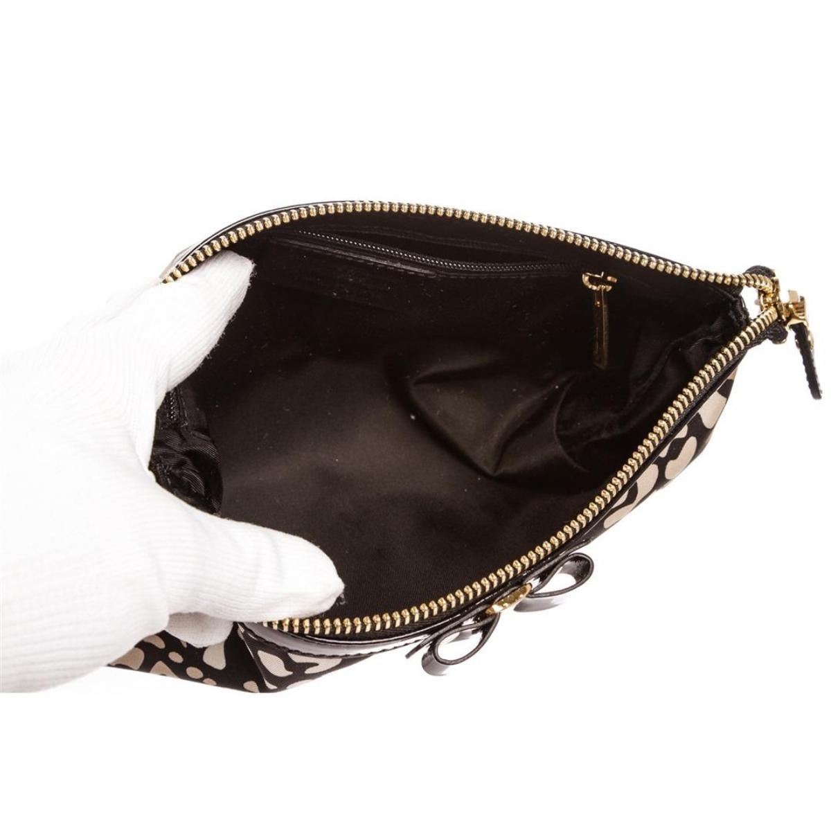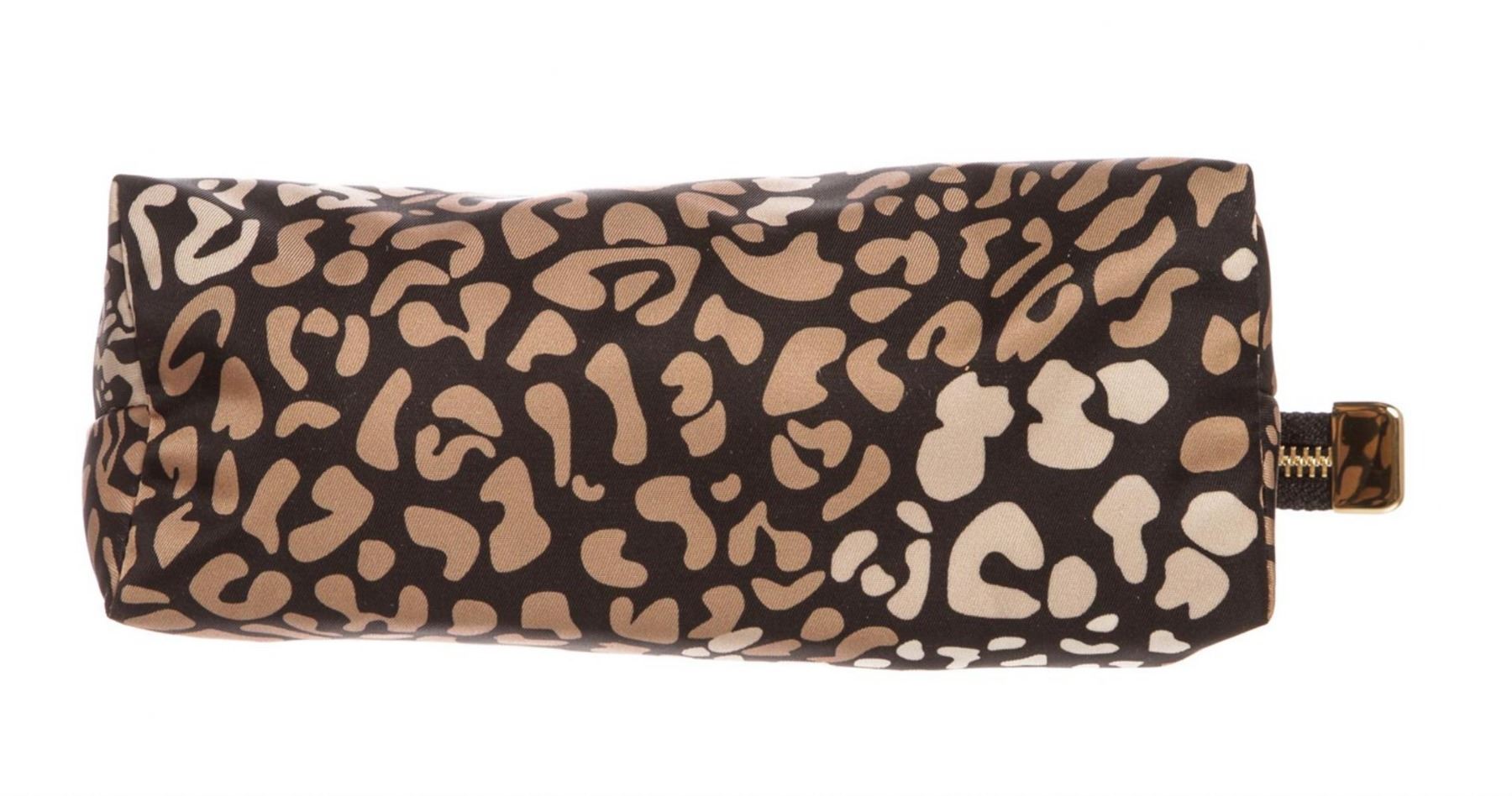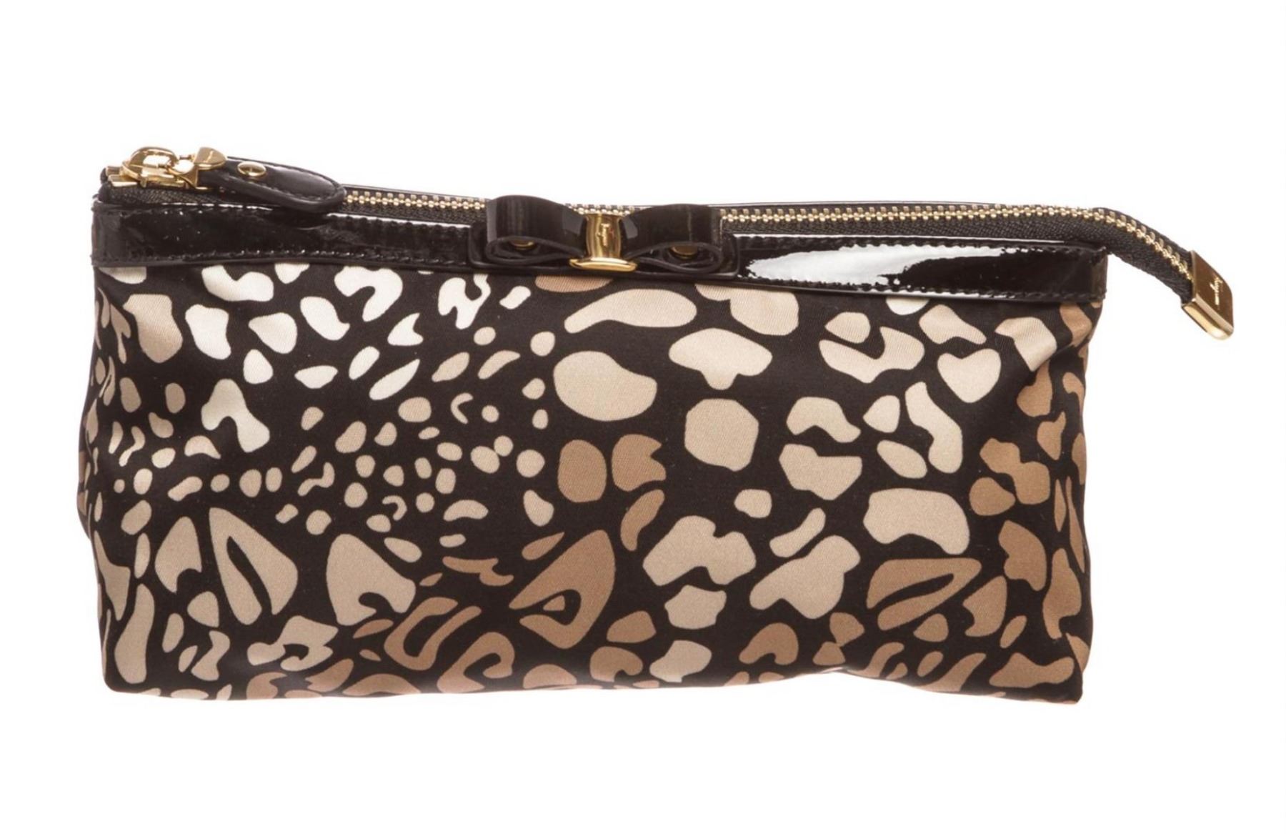 Animal print Salvatore Ferragamo nylon patent Leather small cosmetic bag with black nylon interior lining, one zipper pocket at interior wall and overall zipper closure. Includes Box.