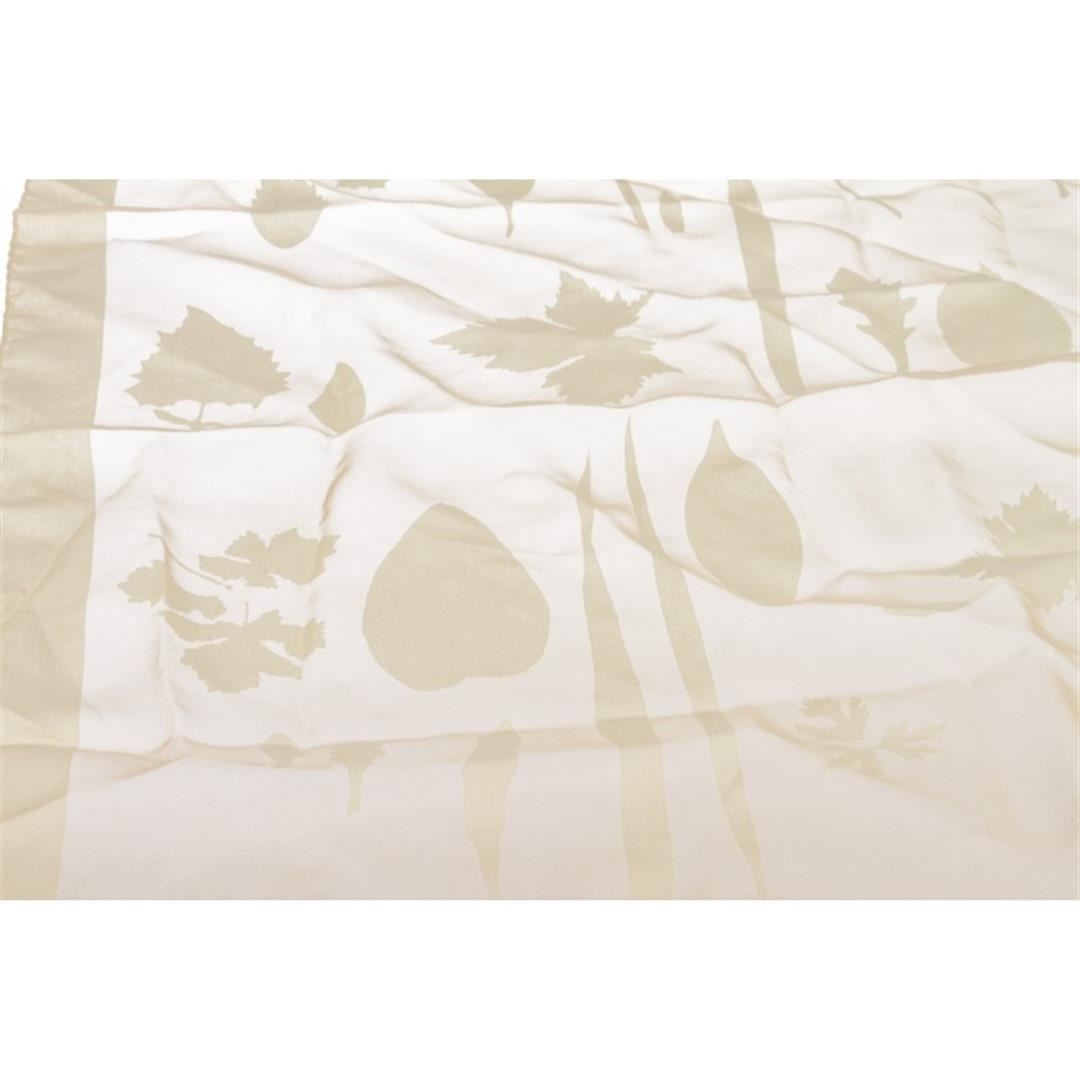 Crafted out of ivory sheer print. Item is pre-owned. Item Dimensions: 27"x27"/68.58cmx68.58cm.