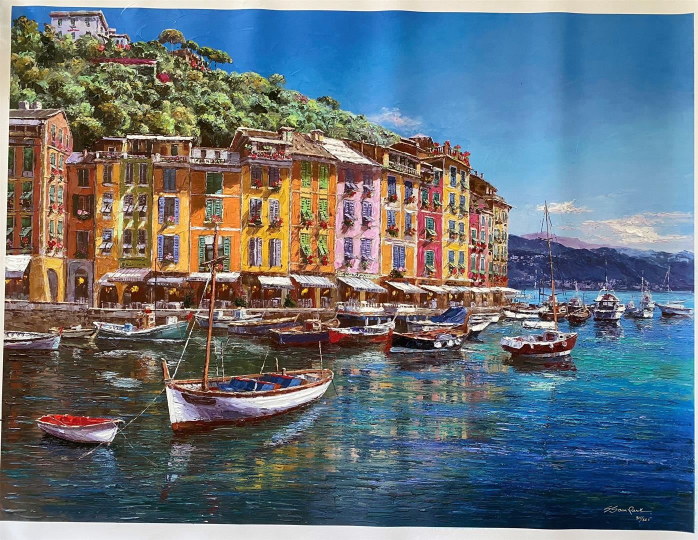 Sam Park "VIEW OF PORTOFINO" Hand Signed and Numbered Limited Edition Embellished Giclee on Canvas Dimensions: 30 x 40 inches (Note: edition number received may differ from photo)