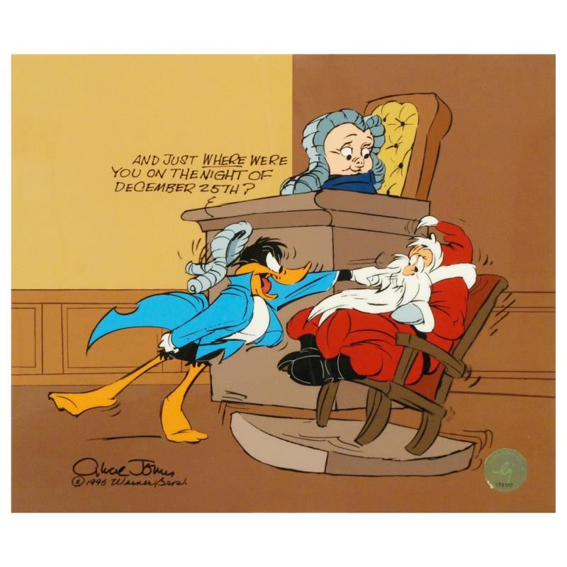 Own this amazing piece based on the original line image hand drawn and hand-inked on paper by Chuck Jones! Santa on Trial is a sold out limited edition animation cel with hand painted coloring on sericel outline, numbered and hand signed by Chuck Jones (1912-2002)! Includes Certificate of Authenticity! Measures approx. 13 x 11.