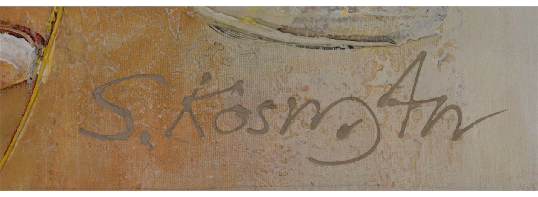 Artist: Shaul Kosman - Title: Untitled - Medium: Original Acrylic on Canvas - Signature: This one-of-a-kind work is hand-signed by the artist at the bottom of the image - Image Size: Approximately 24 inches x 48 inches - Unframed on Unstretched Canvas - Details: This work comes with a Certificate of Authenticity - Biography: Shaul Kosman was born in Lithuania in Kaunas, in 1959. - Musician, architect and artist are the three facets of Shaul's talented and creative personality. He was raised in the atmosphere of classic European architecture in Baltic. Since childhood he played jazz and painted. Probably this is why the main themes and idea of his paintings is a combination and connection between music and architecture. - After immigrating to Israel in 1997, the love for classic shapes and jazz music transferred into a deep understanding of the pulse of the modern city. His paintings are a rich combination of acrylic and oil paint layered and textured using tools, spoons and other utensils. His expansive use of vibrant and brilliant colors enhances the content of his work and draws the viewer into his world.